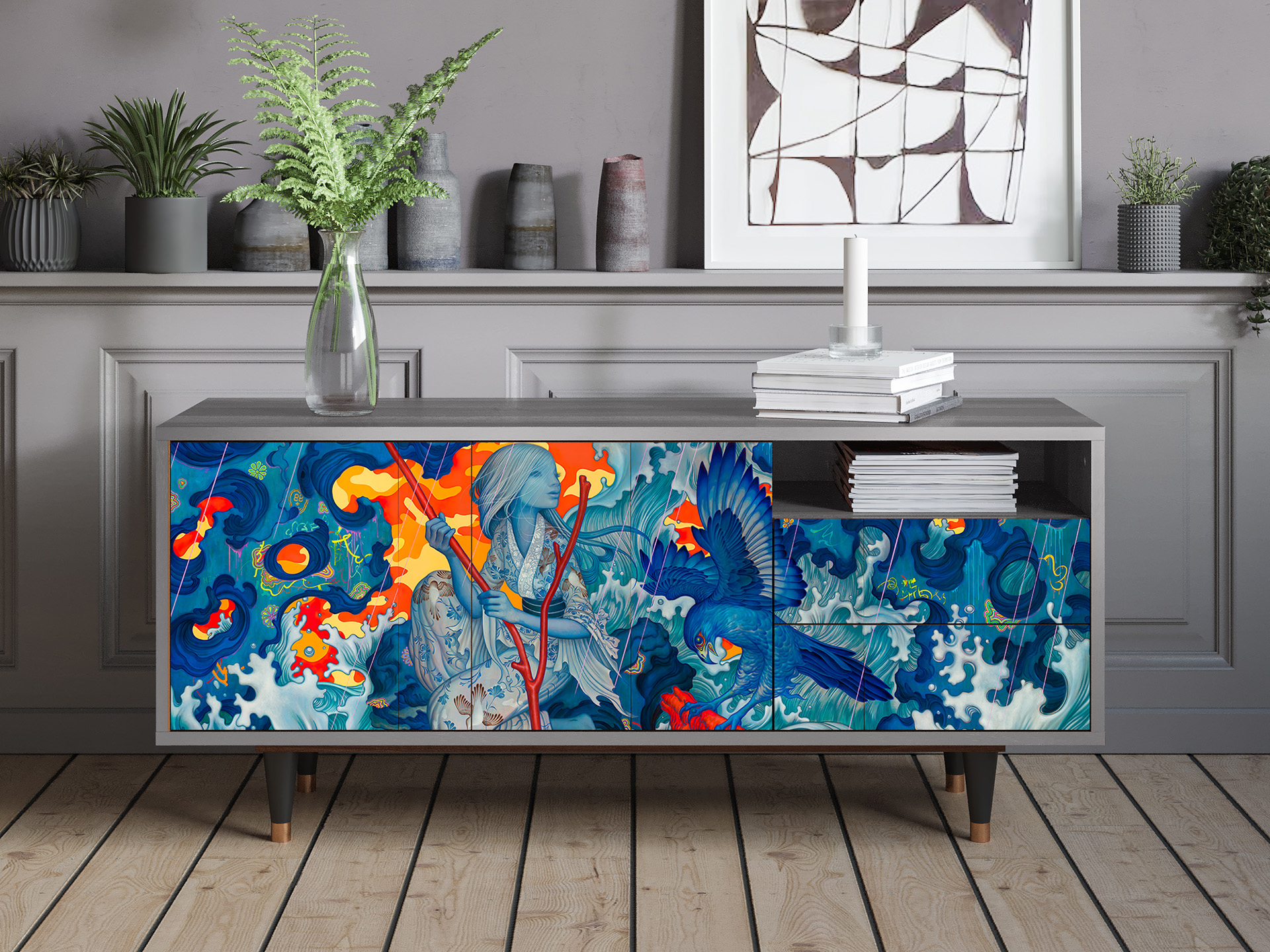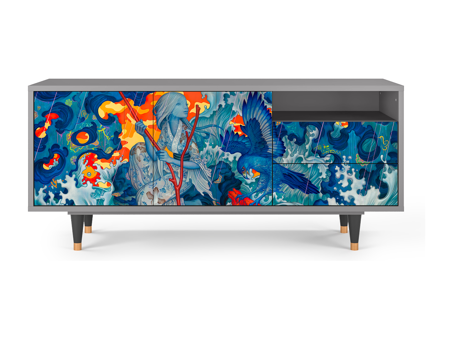 TV-Möbel - 125х56х41 cm - T7 - The Girl - James Jean, Grau