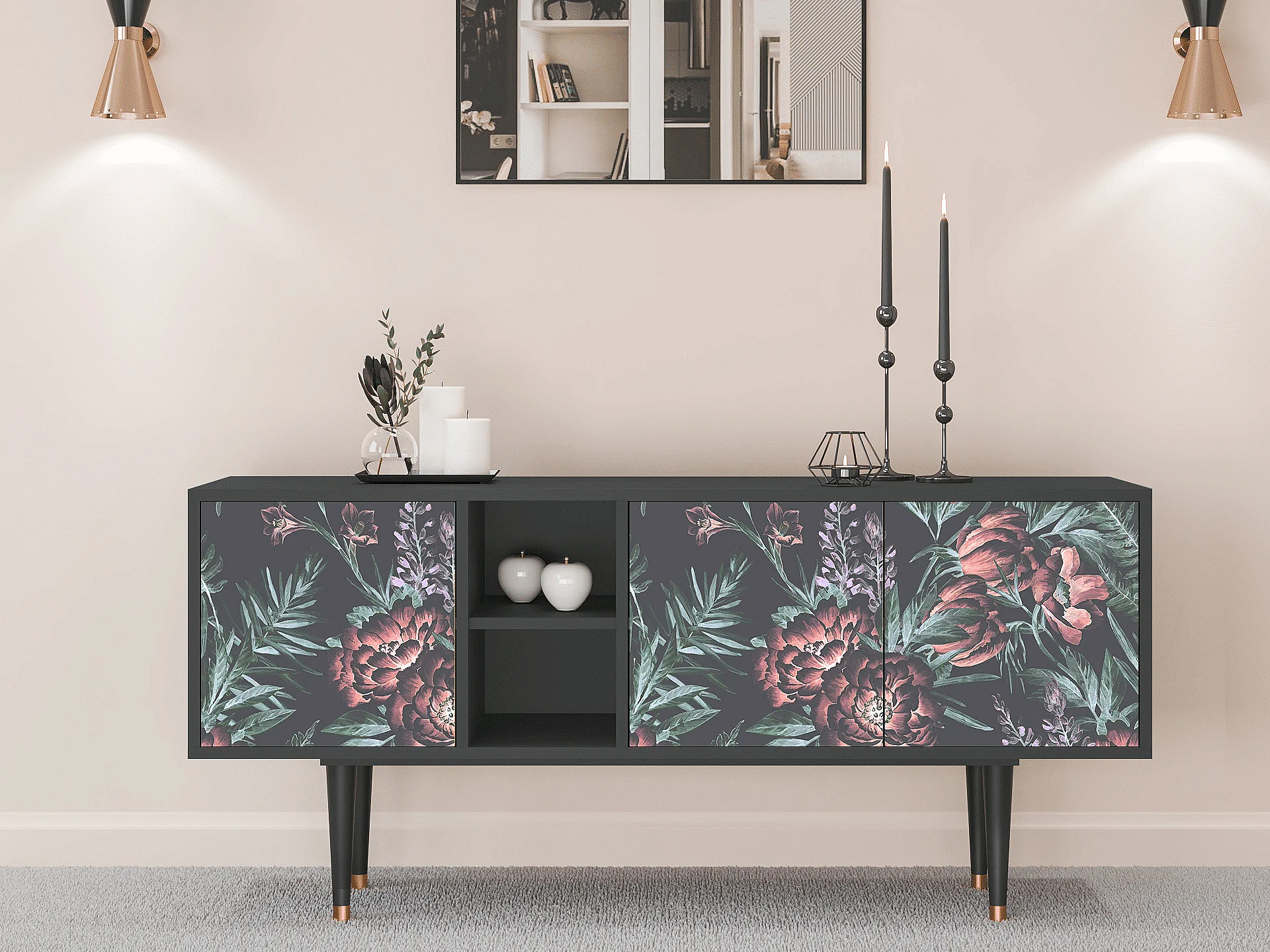 TV-Möbel - 150х69х41 cm - T5 - Dark Peonies, Anthrazit