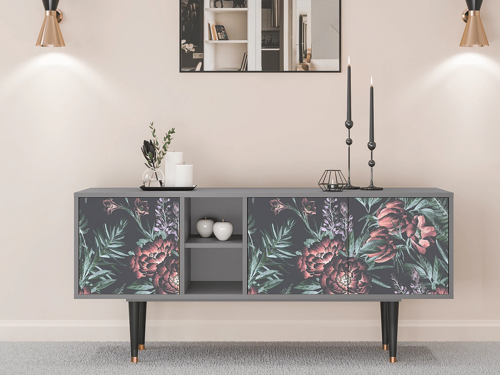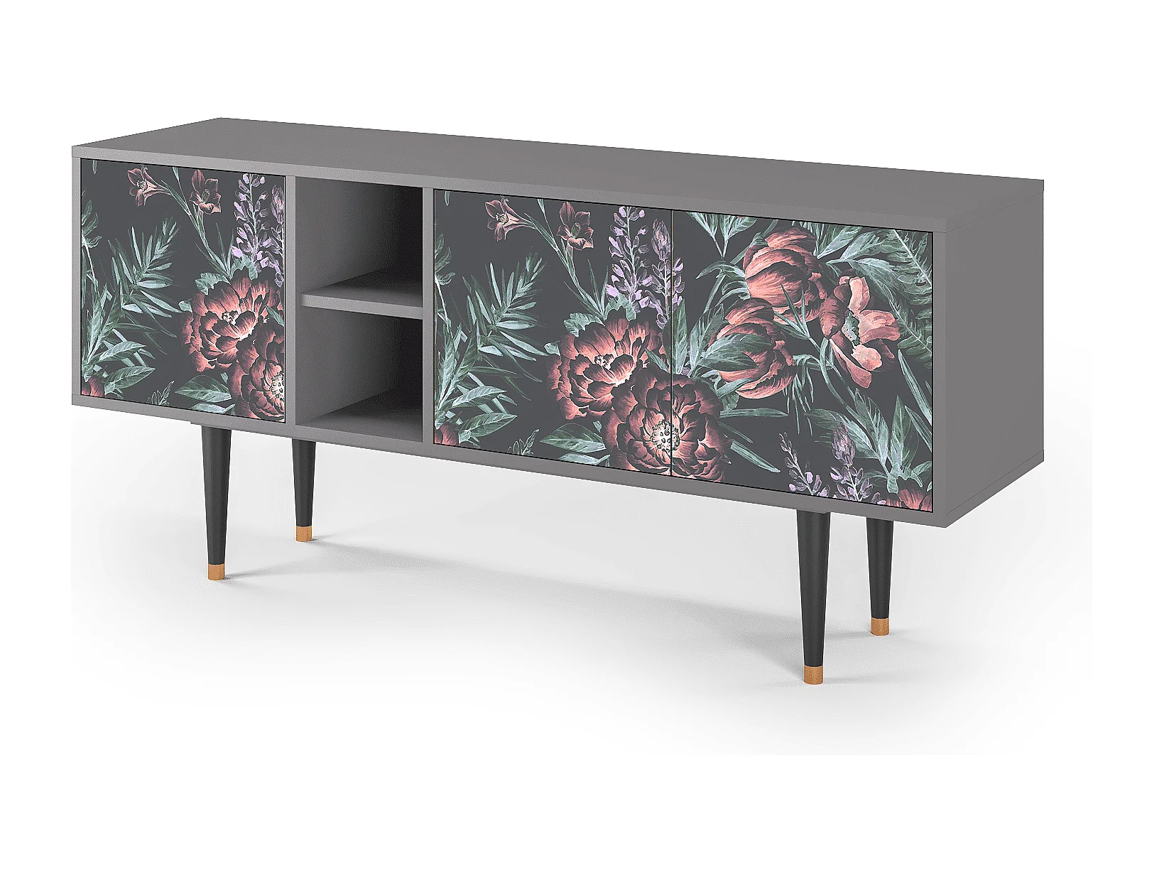 TV-Möbel - 150х69х41 cm - T5 - Dark Peonies, Grau