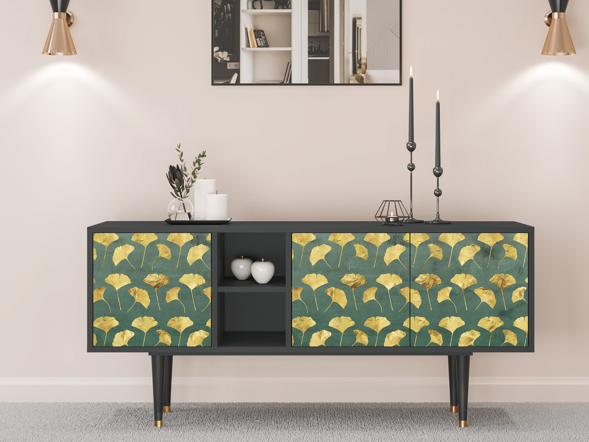 TV-Möbel - 150х69х41 cm - T5 - Gingko leaves, Anthrazit