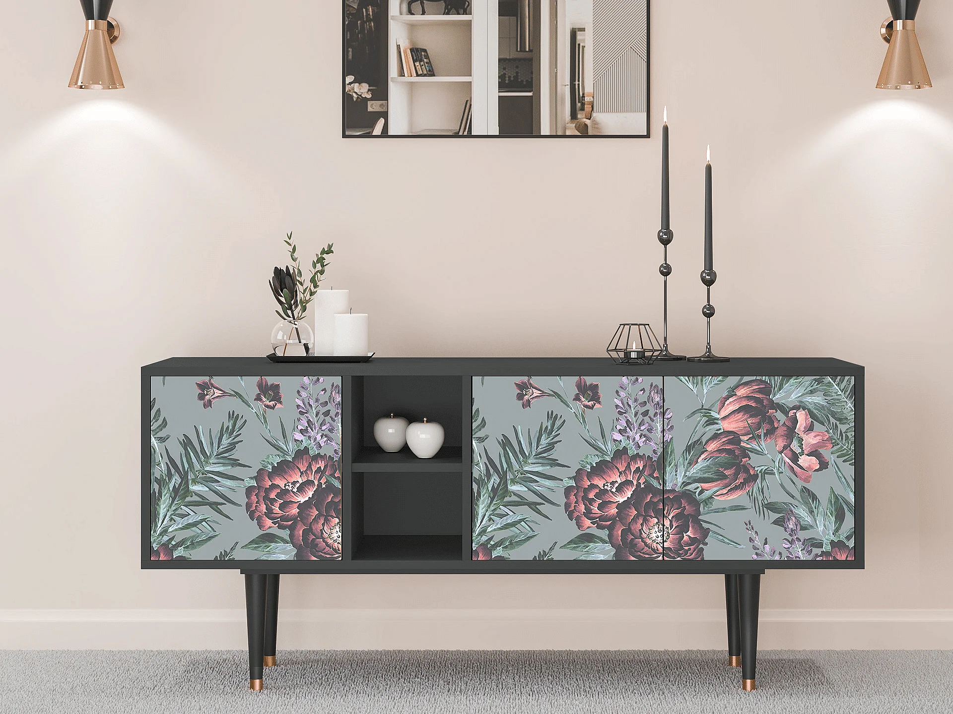 TV-Möbel - 150х69х41 cm - T5 - Light Peonies, Anthrazit