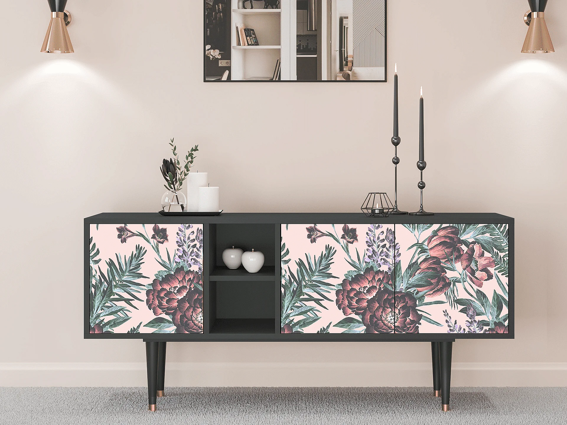 TV-Möbel - 150х69х41 cm - T5 - Peach Peonies, Anthrazit