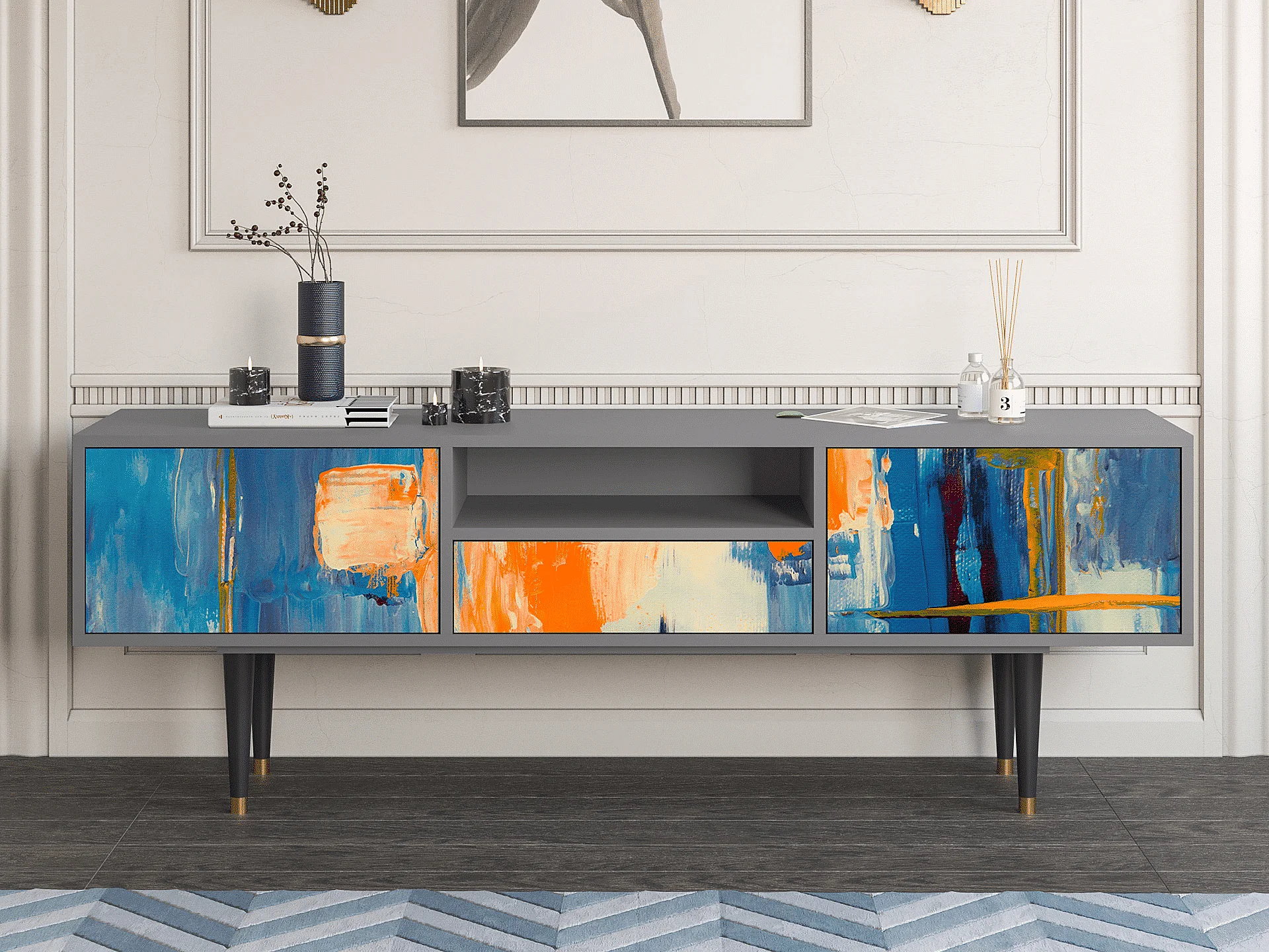 TV-Möbel - 170х59х41 cm - T6 - Abstract Expressionism, Grau