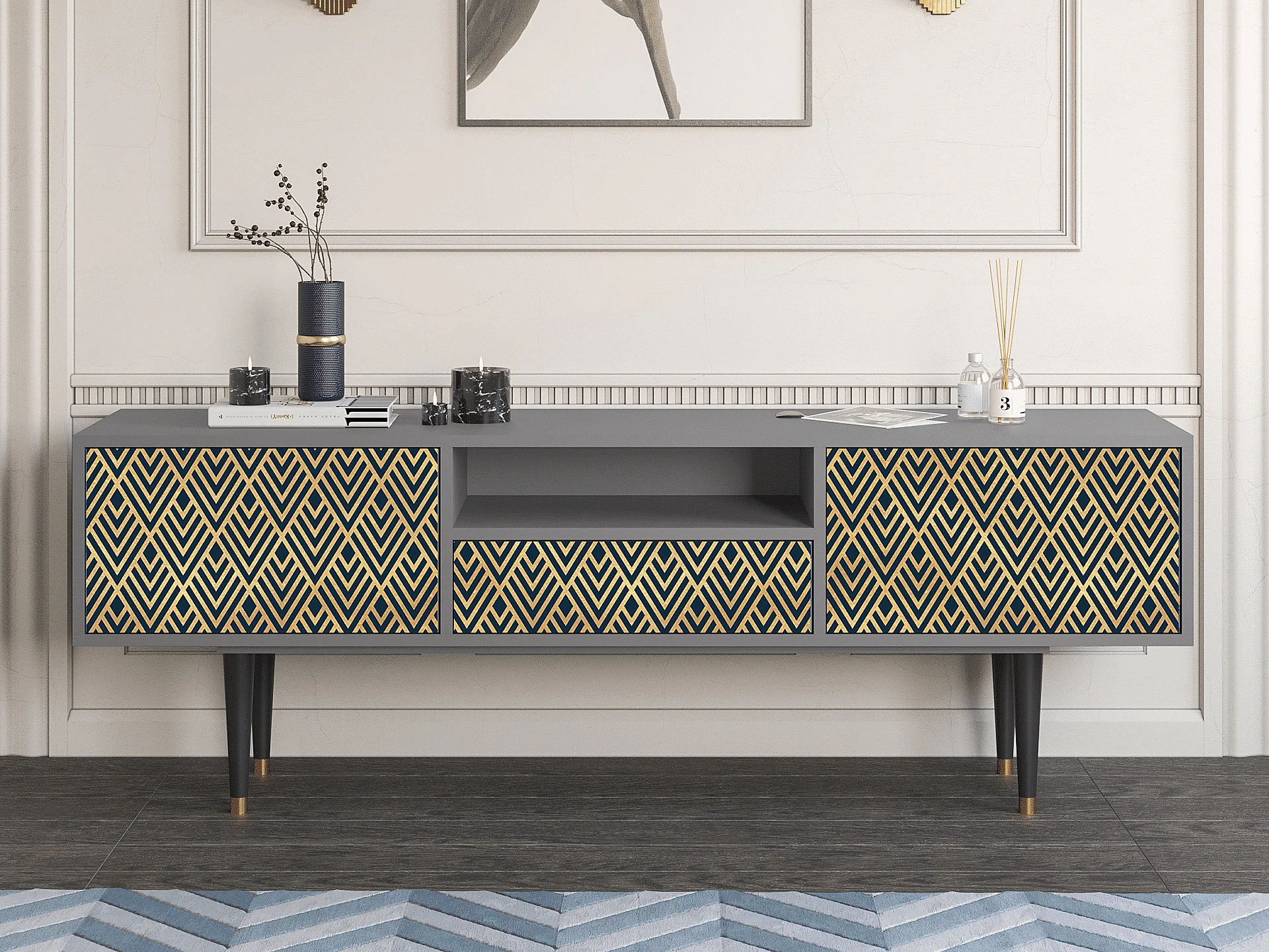 TV-Möbel - 170х59х41 cm - T6 - Egypt Triangles, Grau