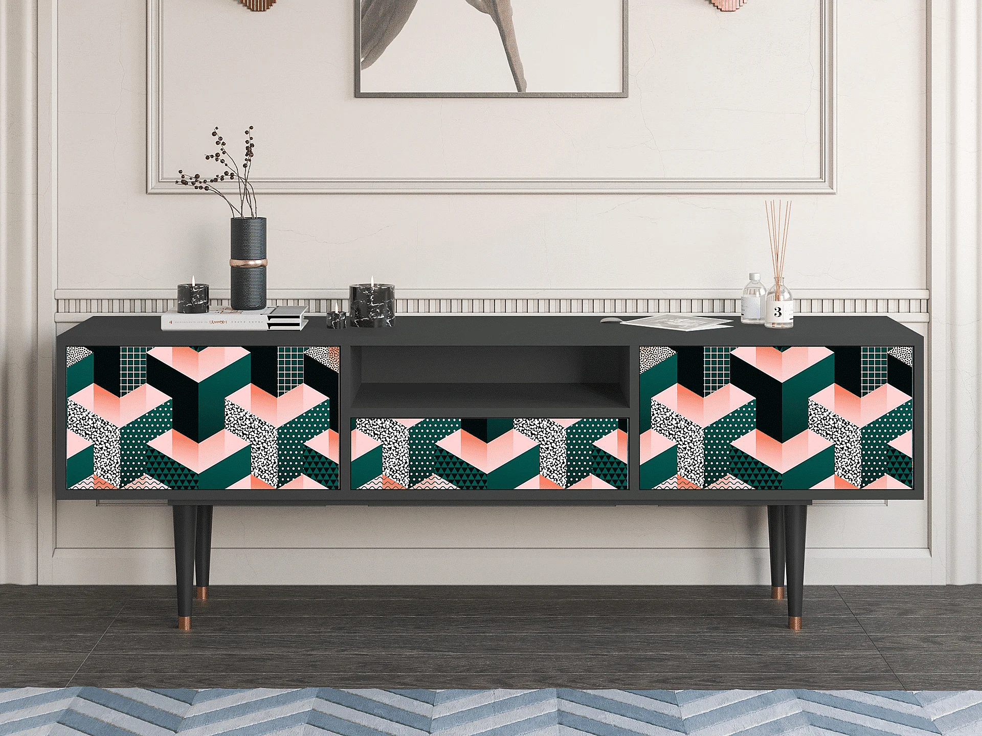 TV-Möbel - 170х59х41 cm - T6 - Geometric Madness, Anthrazit