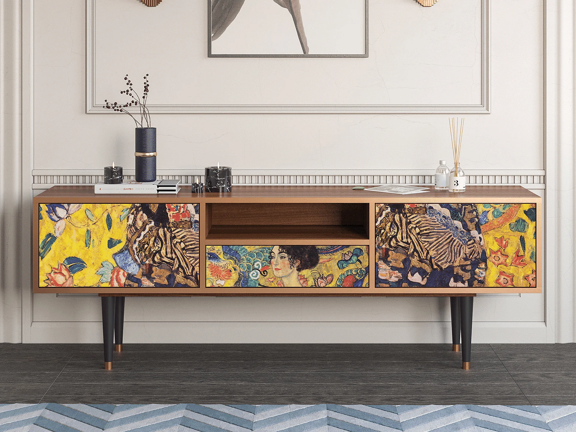 TV-Möbel - 170х59х41 cm - T6 - Lady with Fan by Klimt, Walnuss