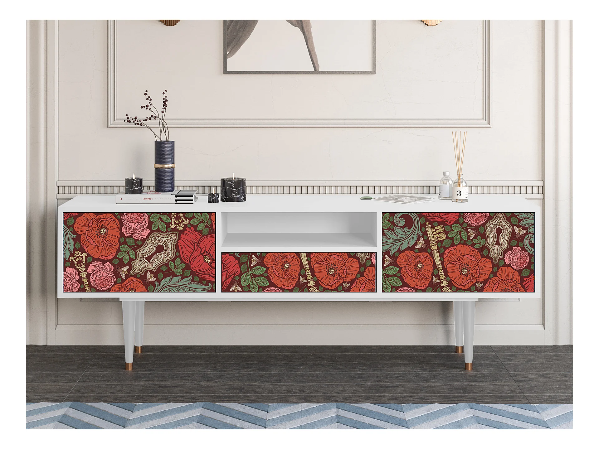 TV-Möbel - 170х59х41 cm - T6 - Poppy Garden, Weiß