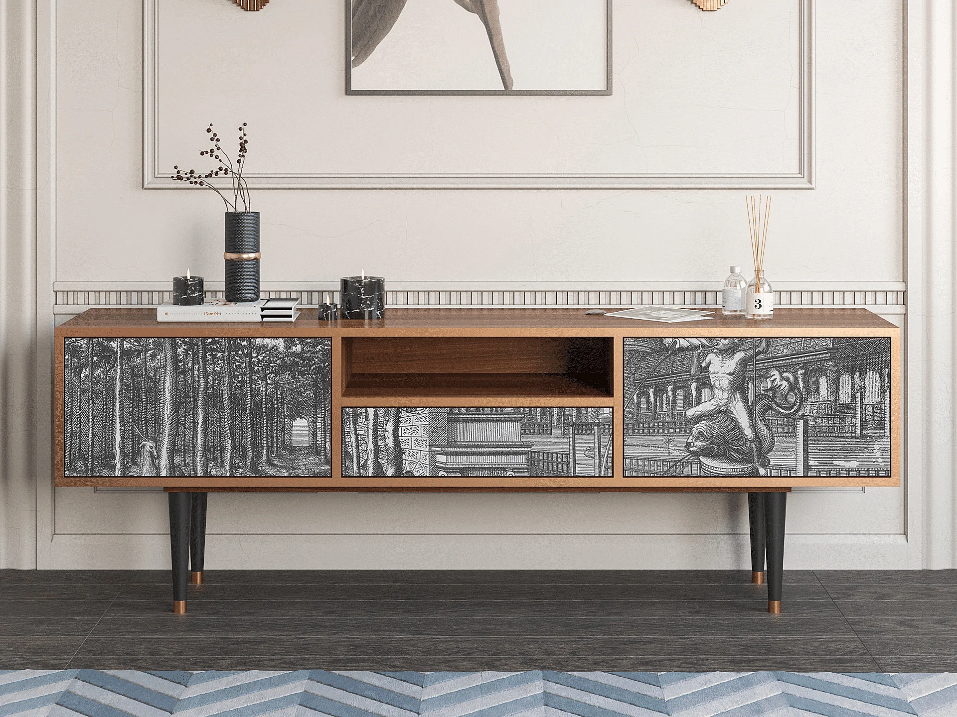 TV-Möbel - 170х59х41 cm - T6 - View of the Piazza, Walnuss