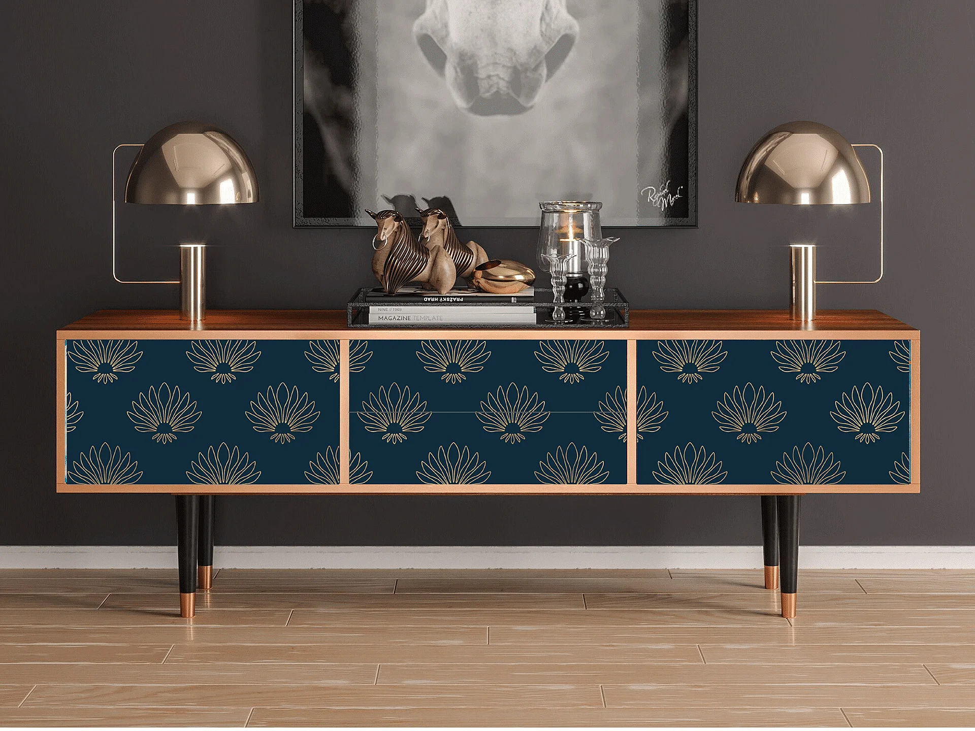 TV-Möbel - 170х59х48 cm - T4 - Blue Lotus, Walnuss