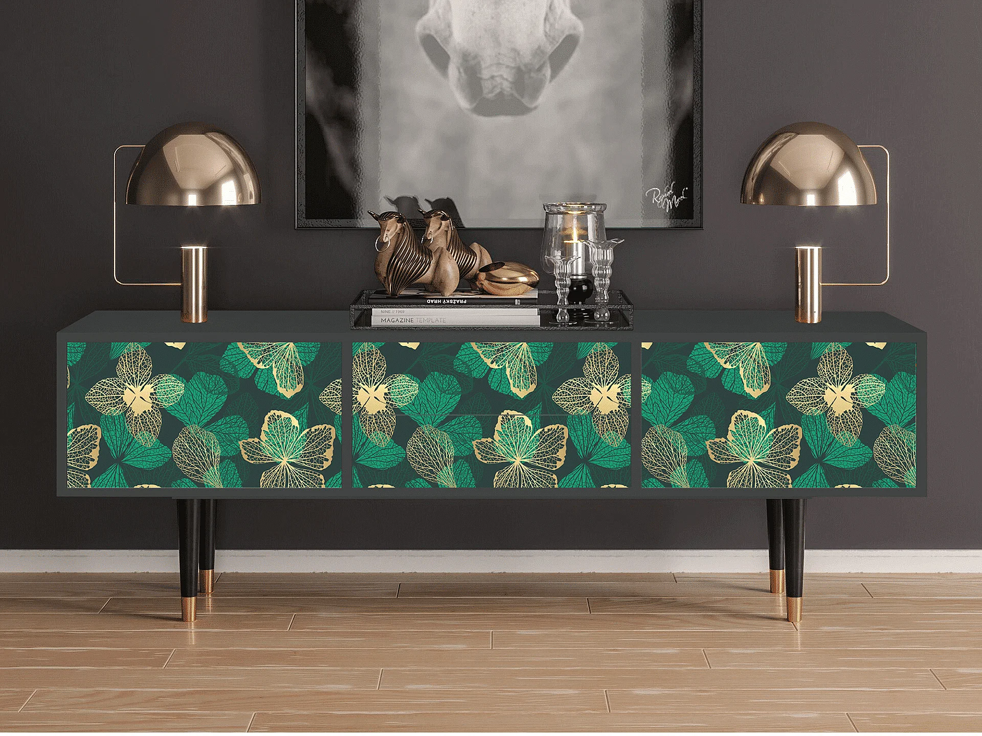 TV-Möbel - 170х59х48 cm - T4 - Green Flower, Anthrazit