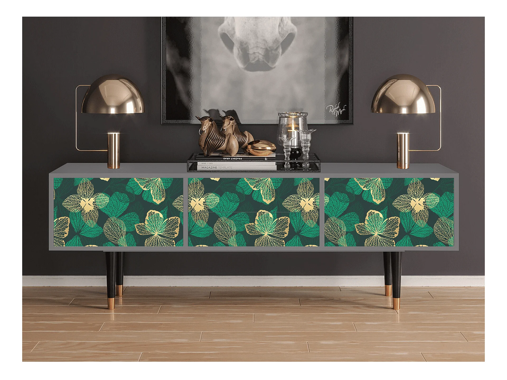 TV-Möbel - 170х59х48 cm - T4 - Green Flower, Grau