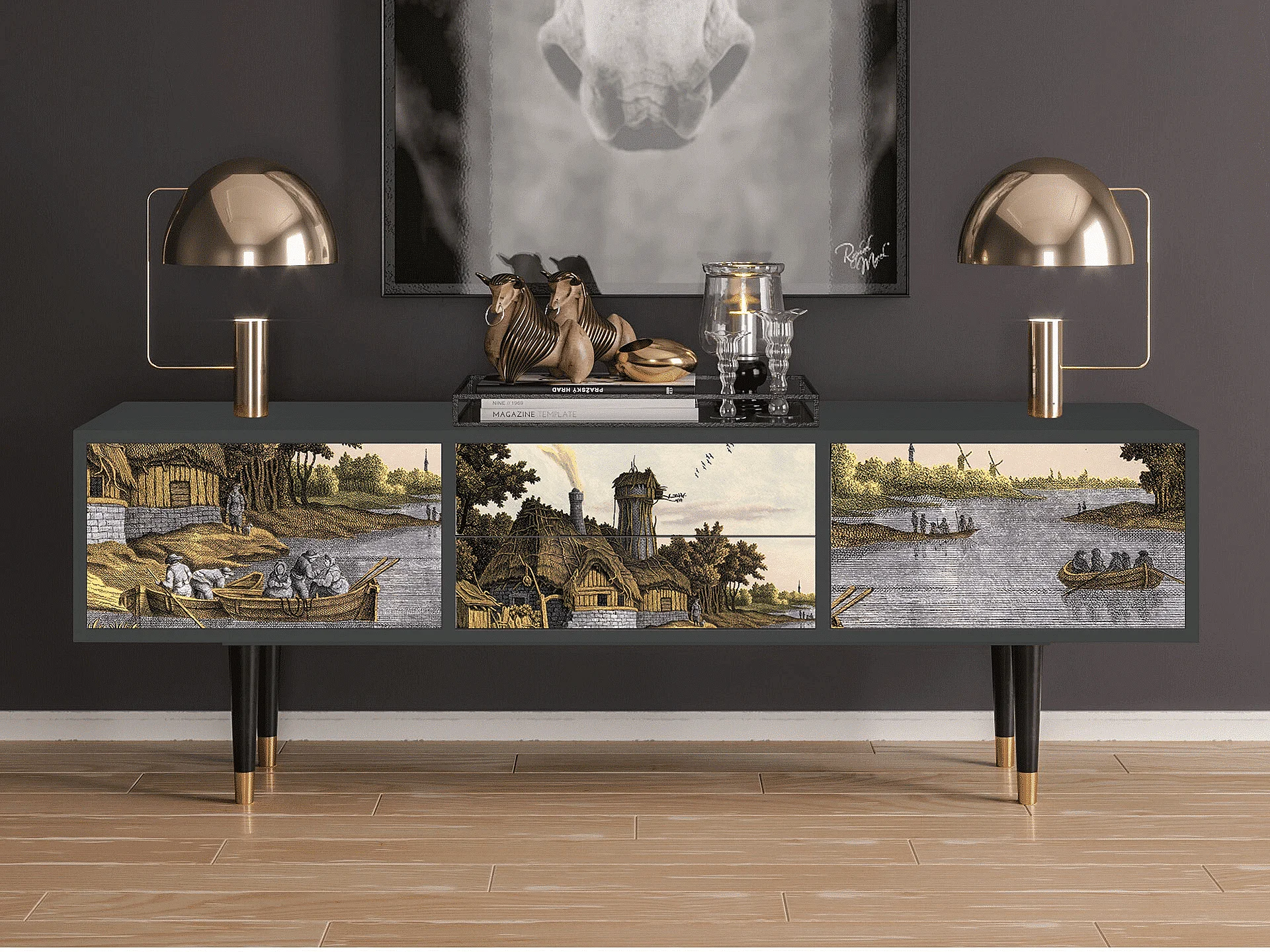 TV-Möbel - 170х59х48 cm - T4 - Mill along a River, Anthrazit