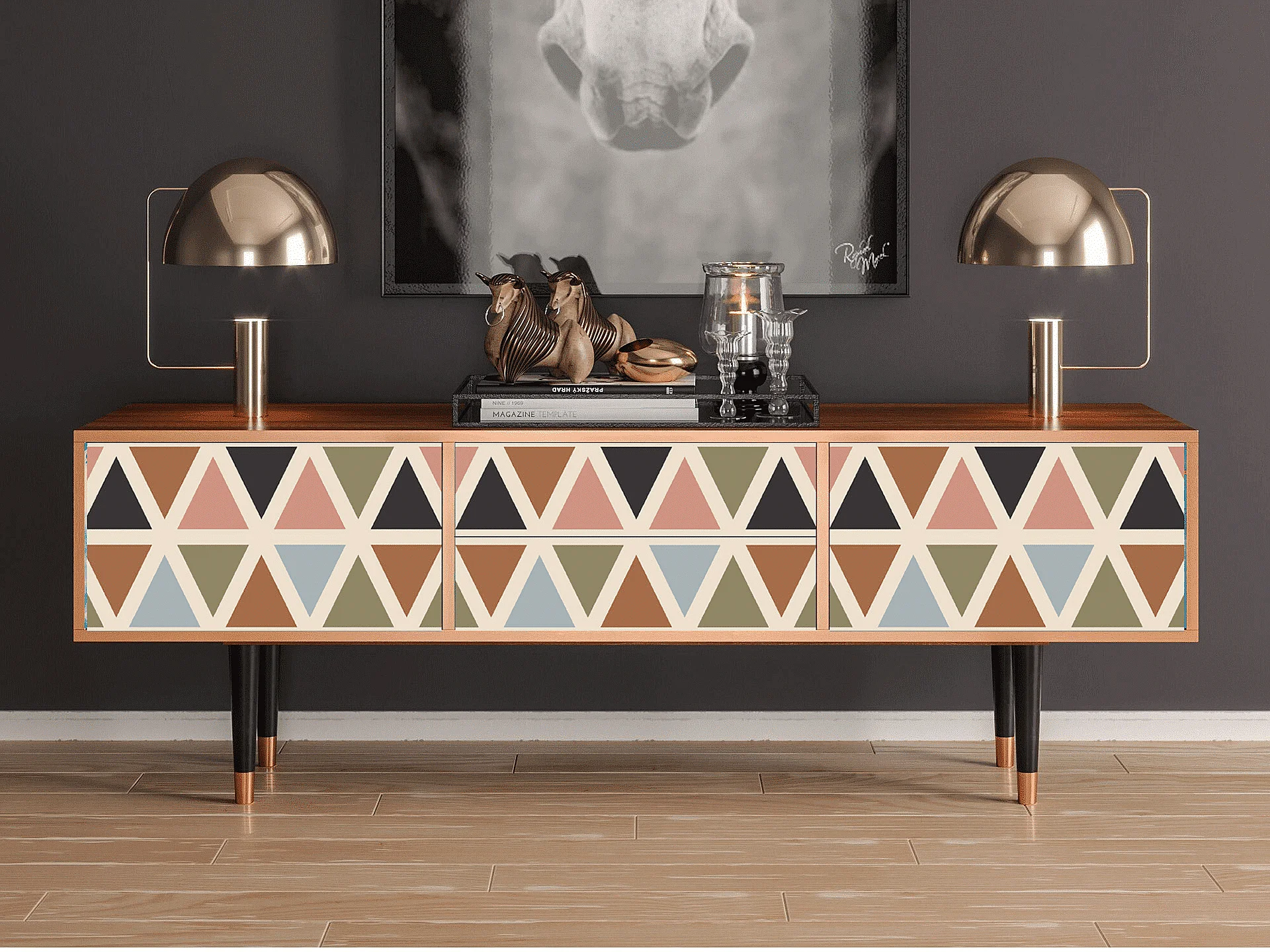 TV-Möbel - 170х59х48 cm - T4 - Royal Triangles, Walnuss