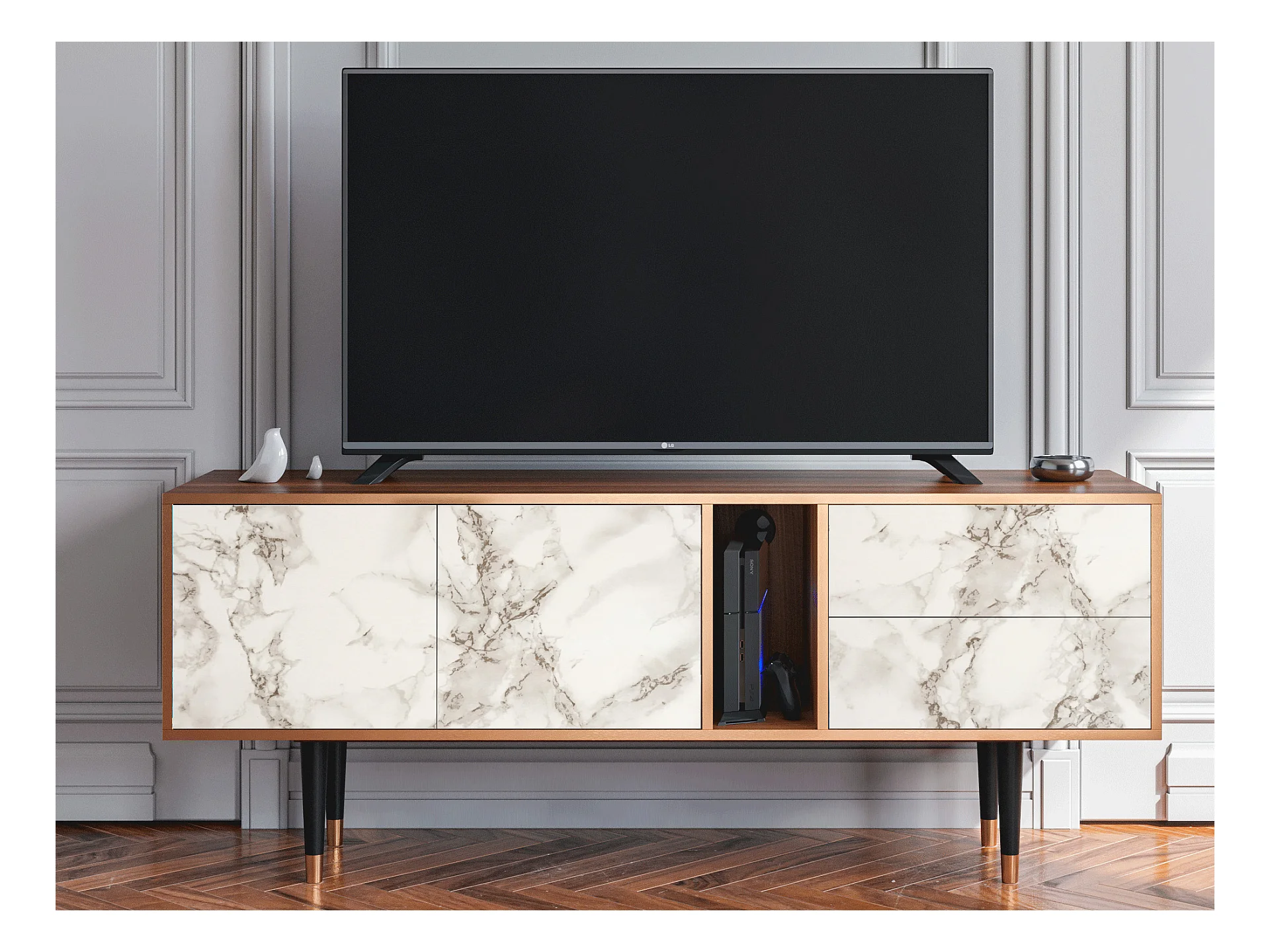TV-Möbel - 170х69х48 cm - T1 - Milk Marble, Walnuss
