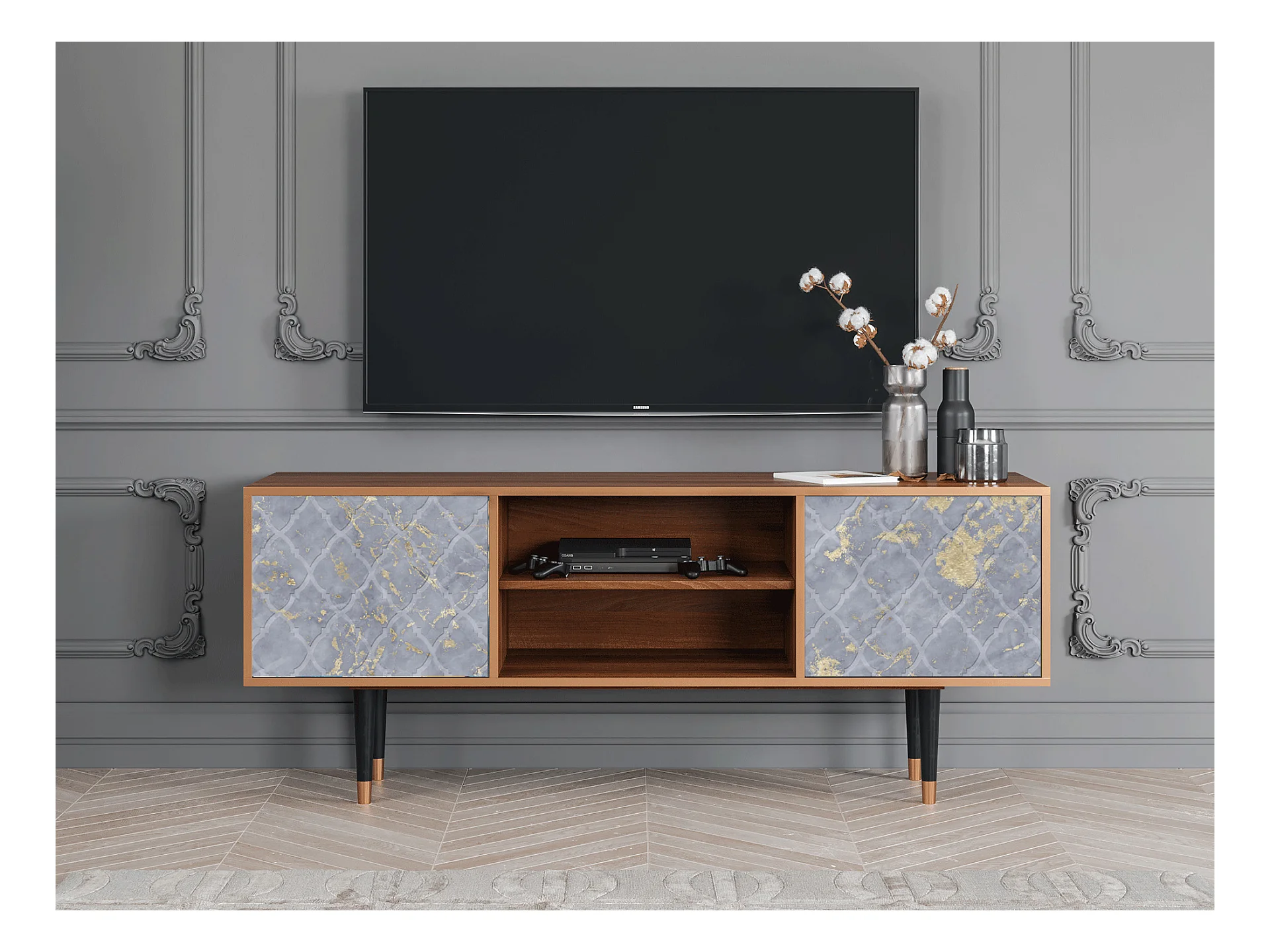 TV-Möbel - 170х69х48 cm - T2 - Golden Smoke, Walnuss