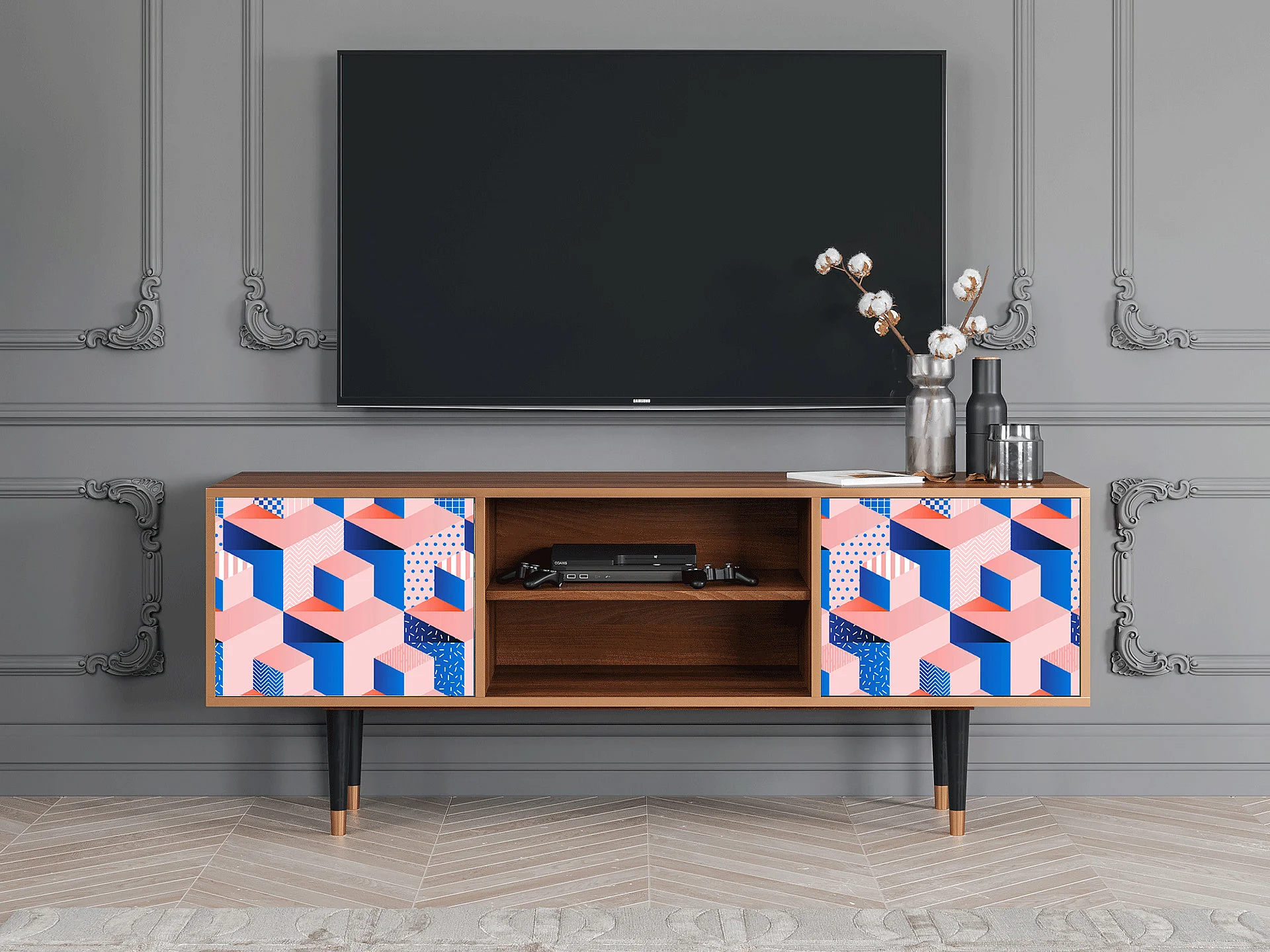 TV-Möbel - 170х69х48 cm - T2 - Pinky Squares, Walnuss