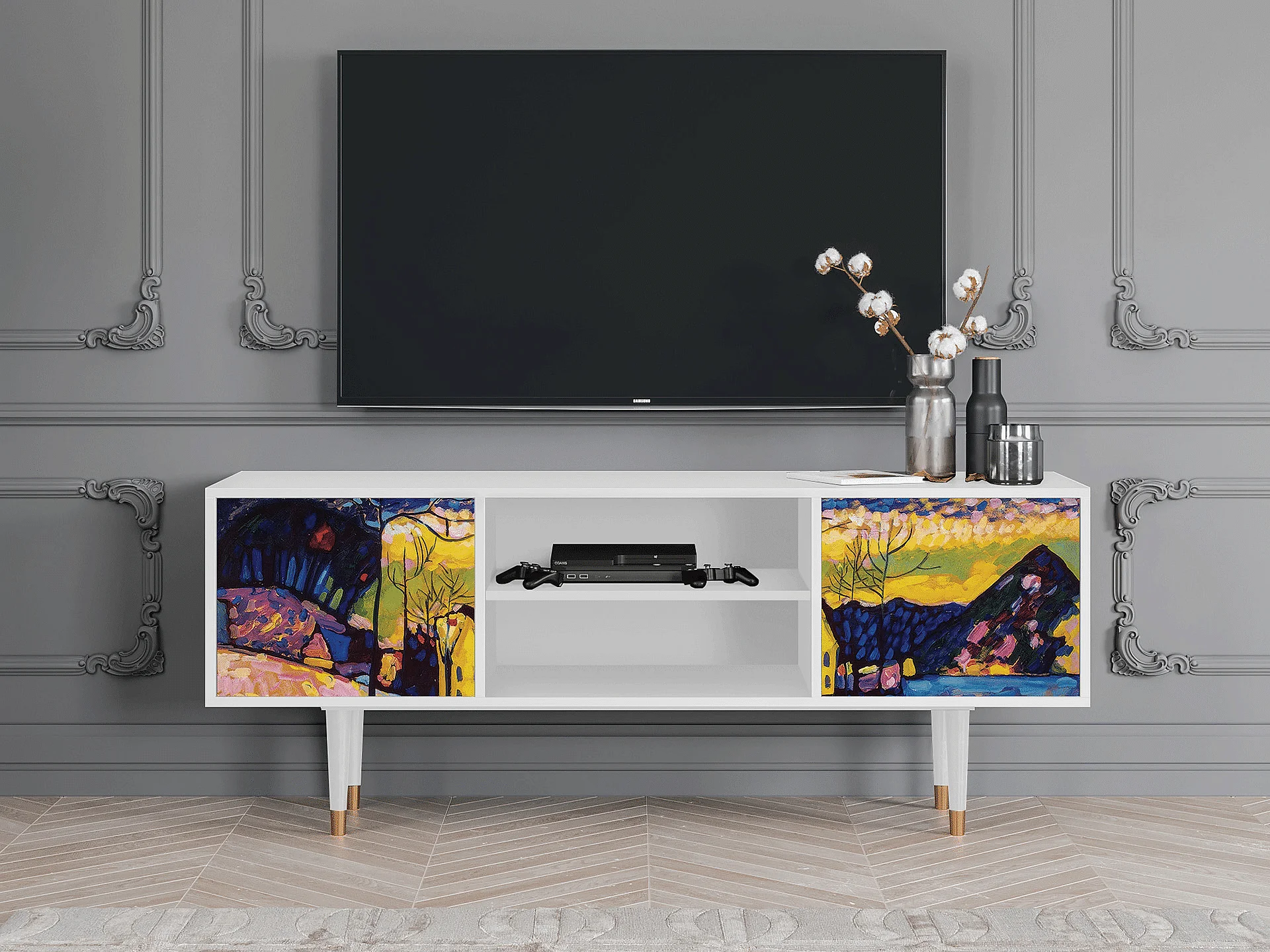 TV-Möbel - 170х69х48 cm - T2 - Winter Landscape, Weiß