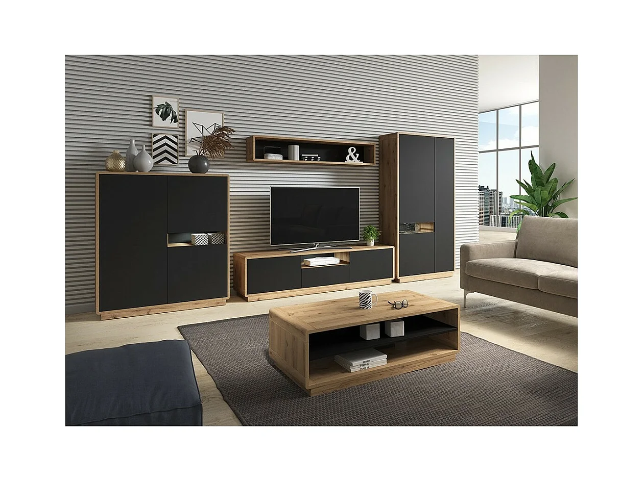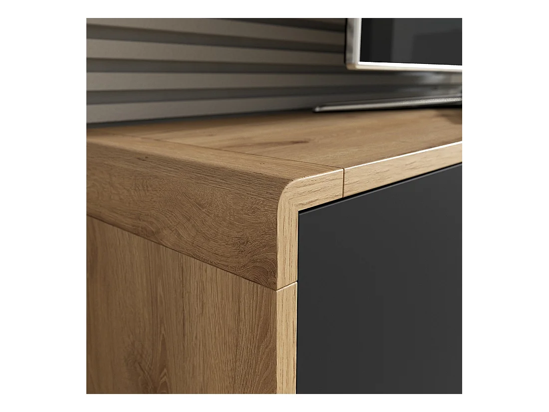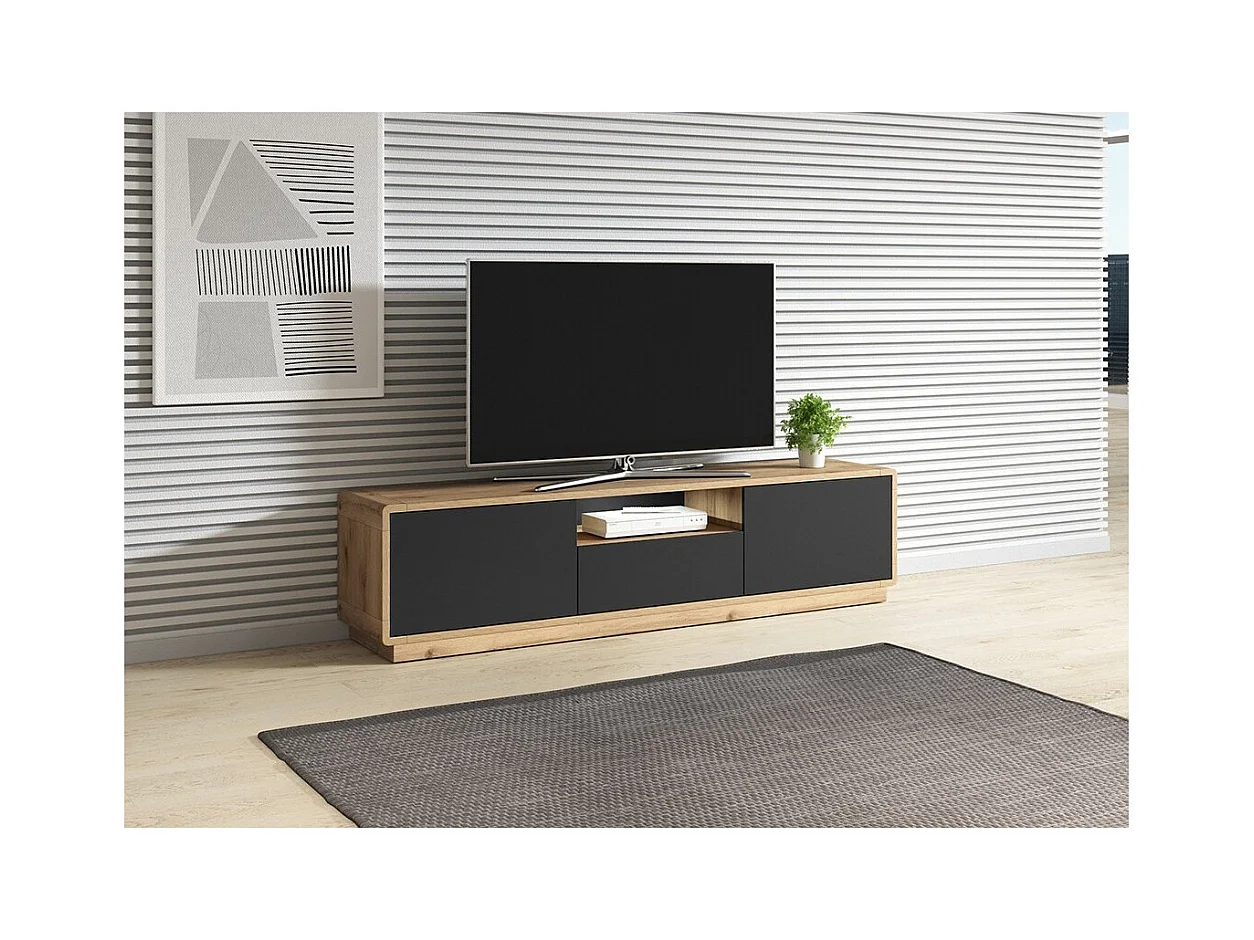 TV-Möbel 180 cm Kollektion VILLA. Farbe Eiche und matt Schwarz. Integrierte LED.
