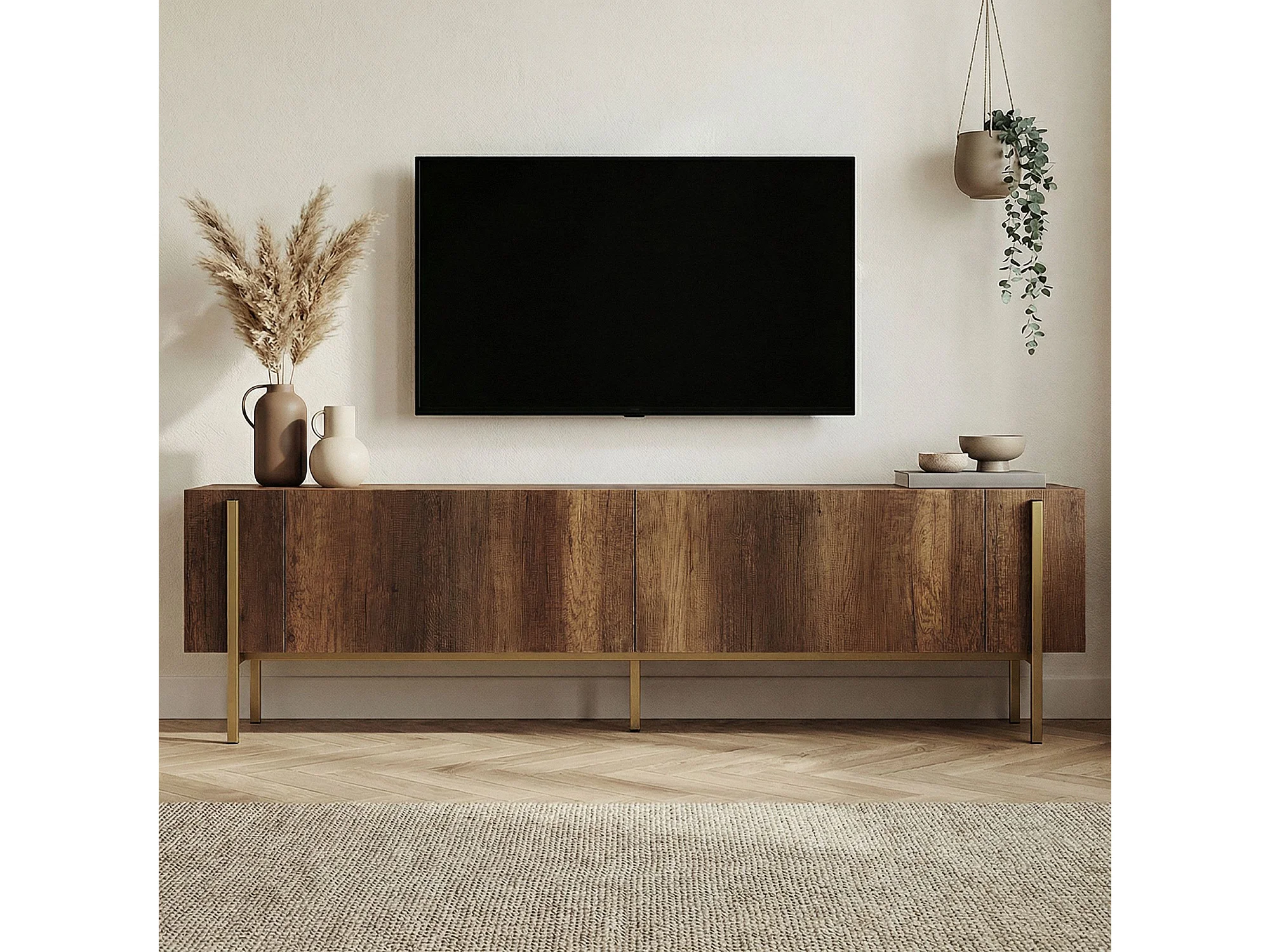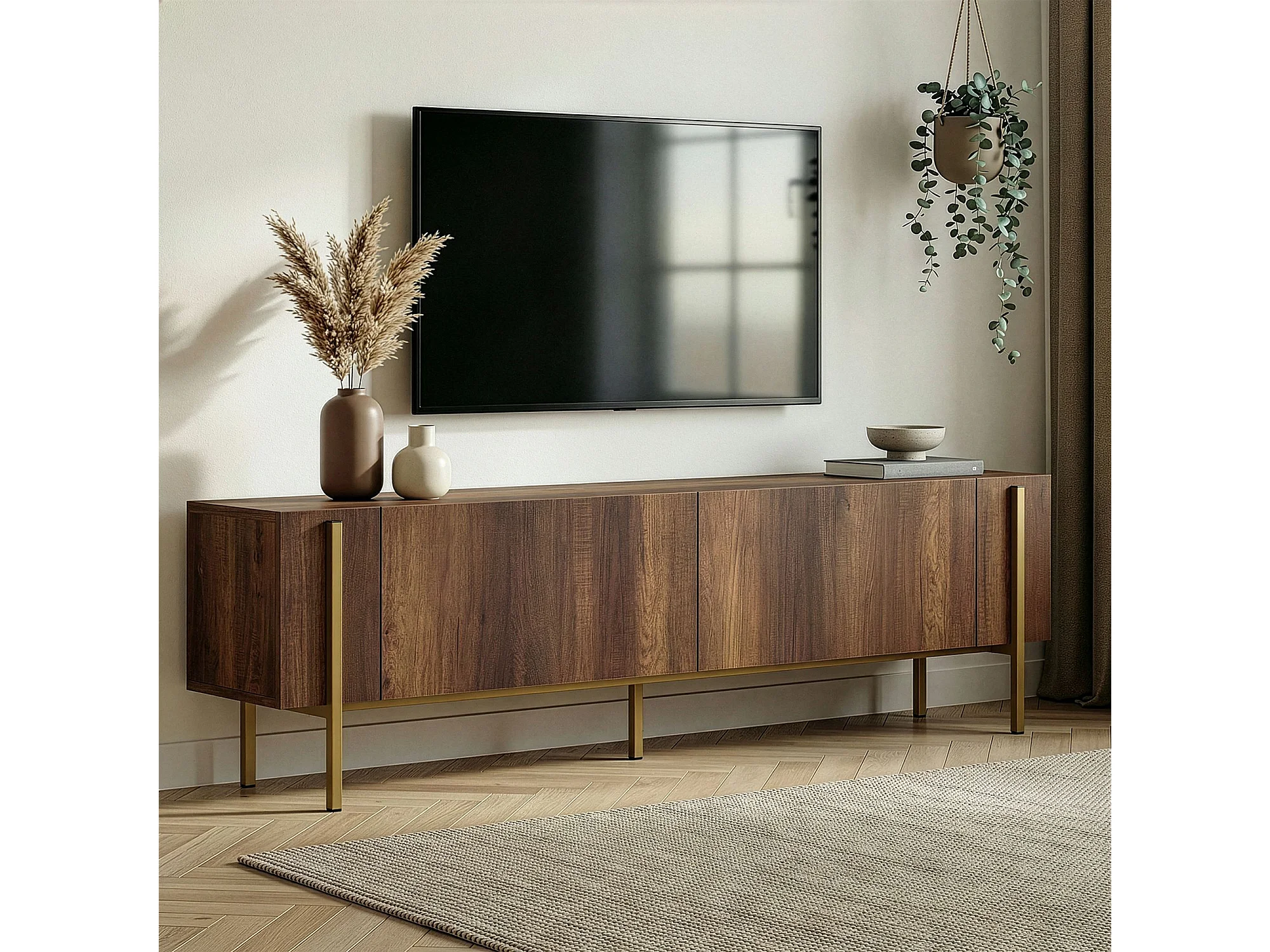 TV-Möbel aus Holz "Nexus" - 180 x 30 x 45 cm - Nussbaum Barock Gold