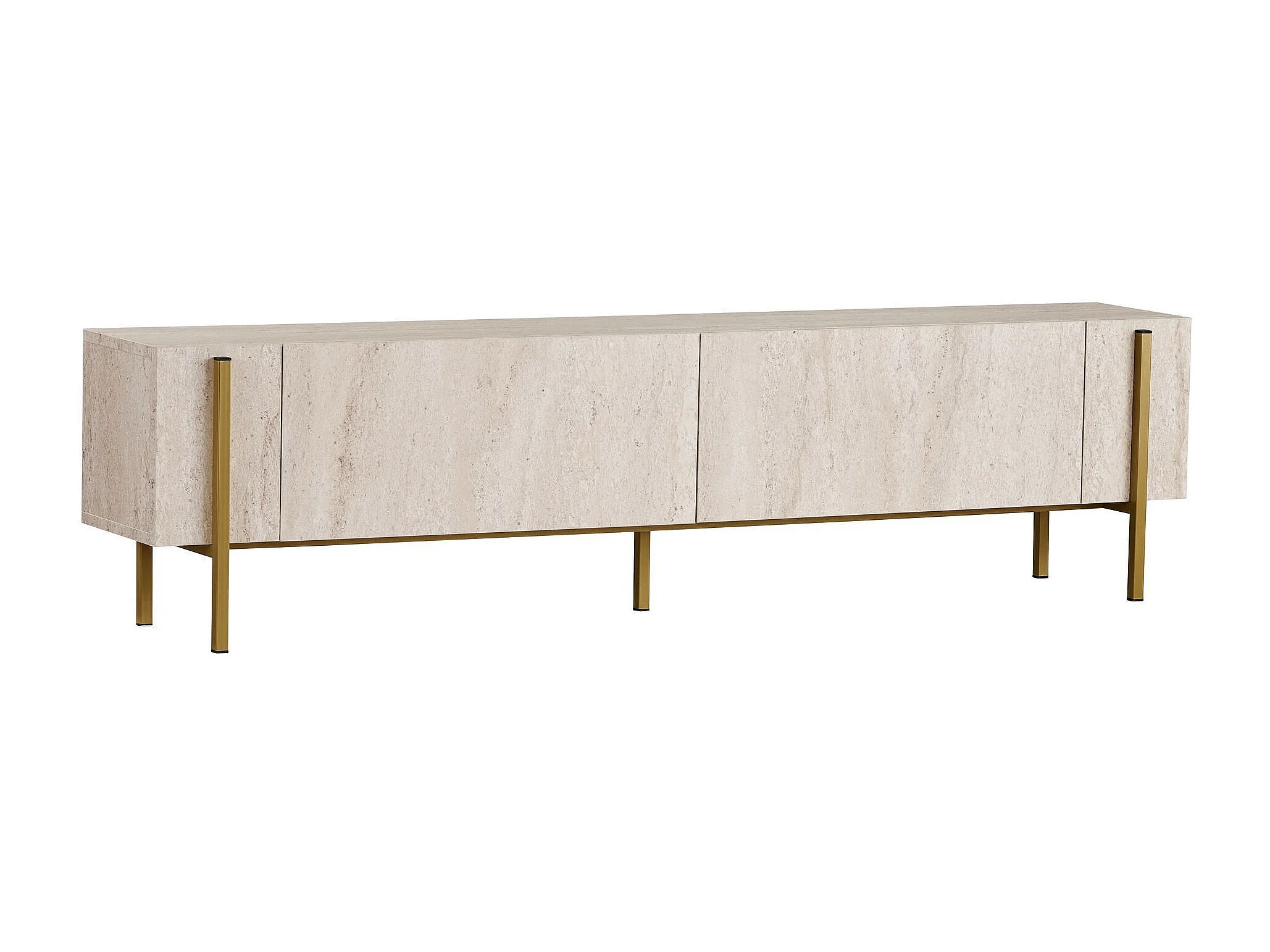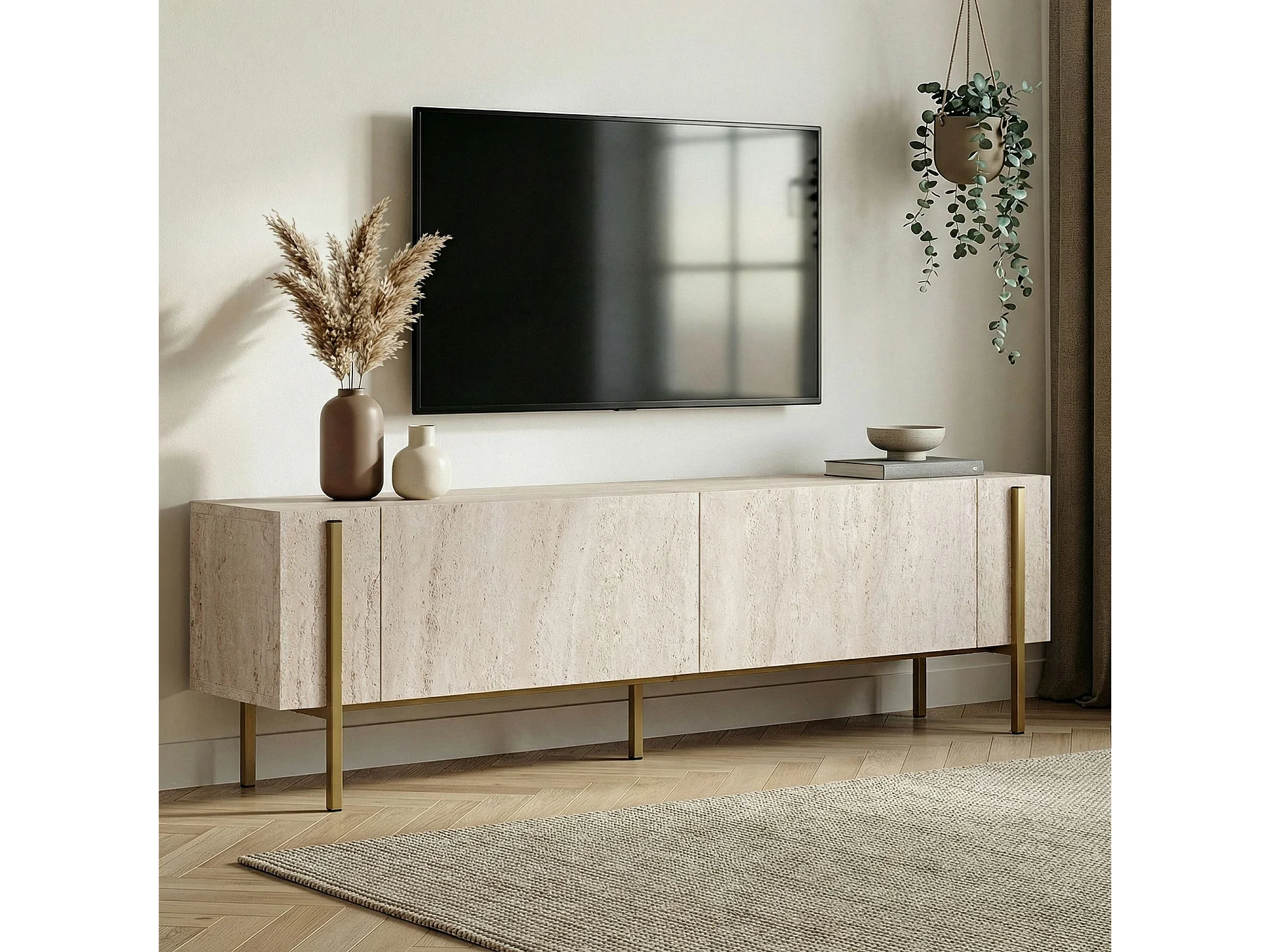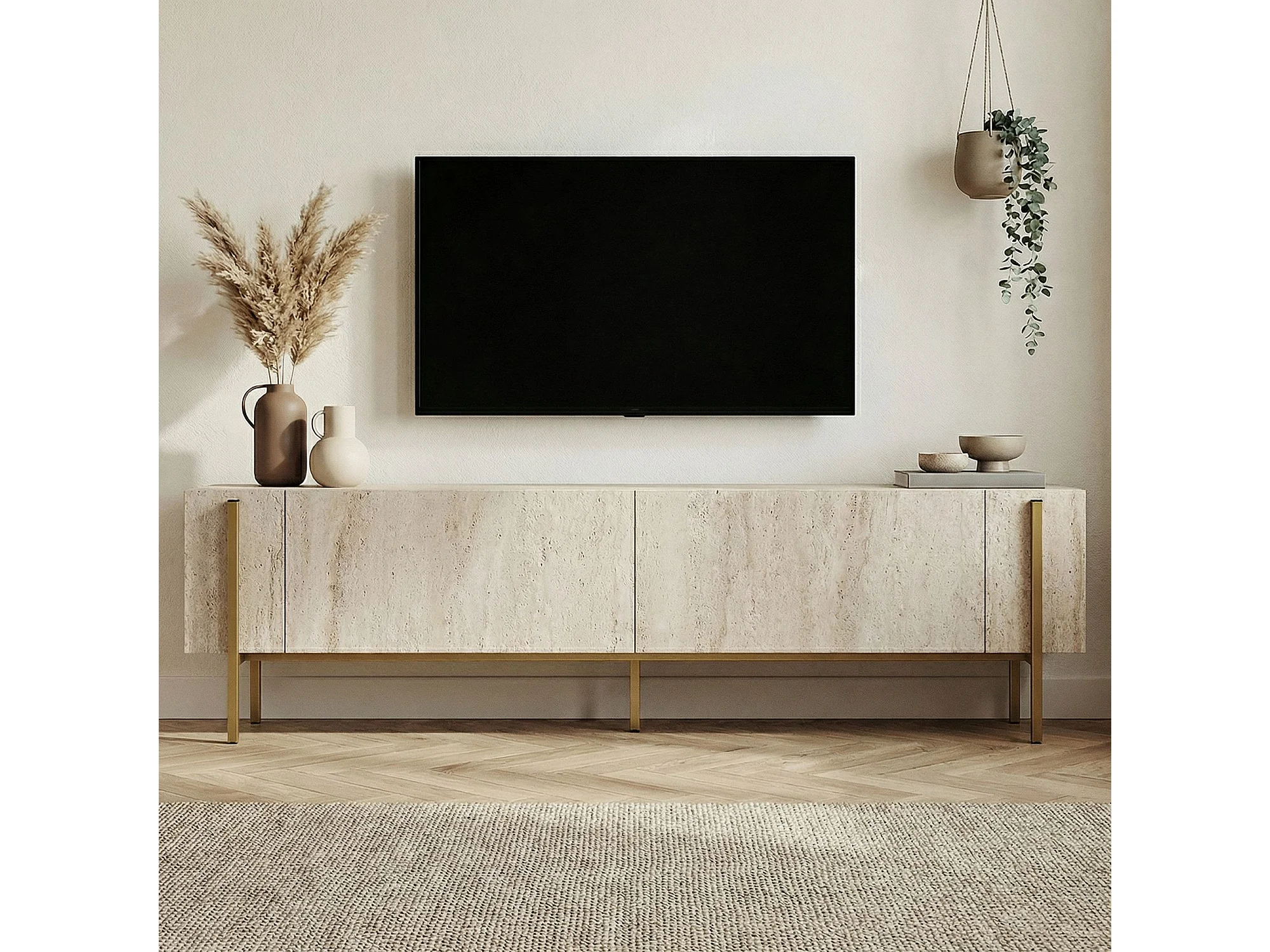 TV-Möbel aus Holz "Nexus" - 180 x 30 x 45 cm - Travertin / Gold