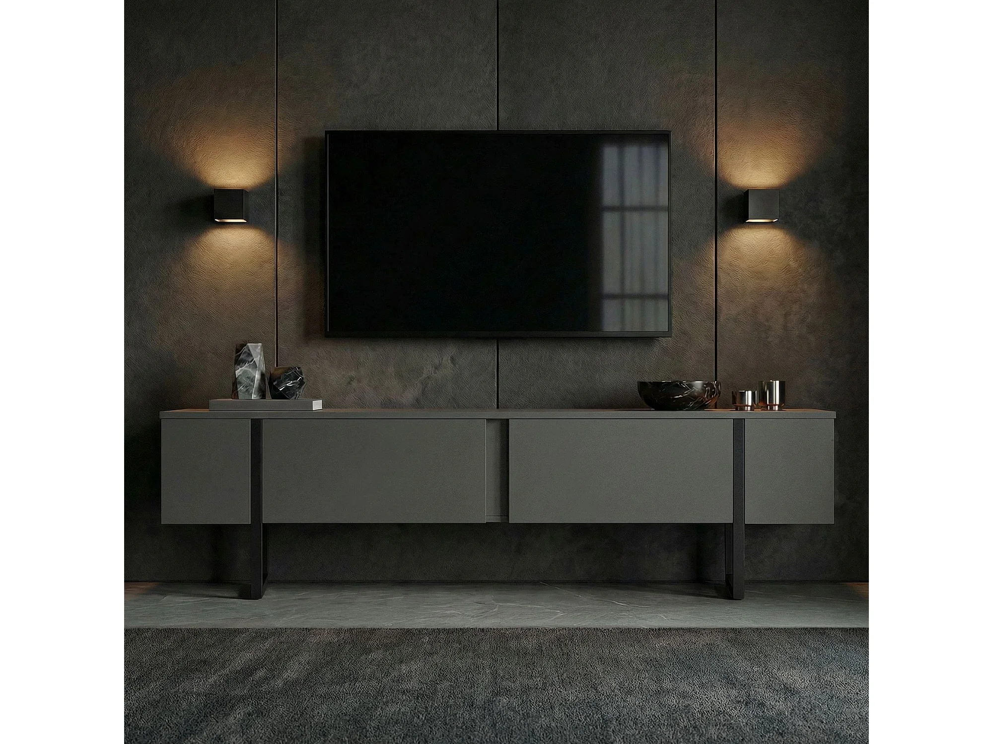 TV-Möbel aus Holz "Onera" - 180 x 30 x 50 cm - Anthrazit / Schwarz