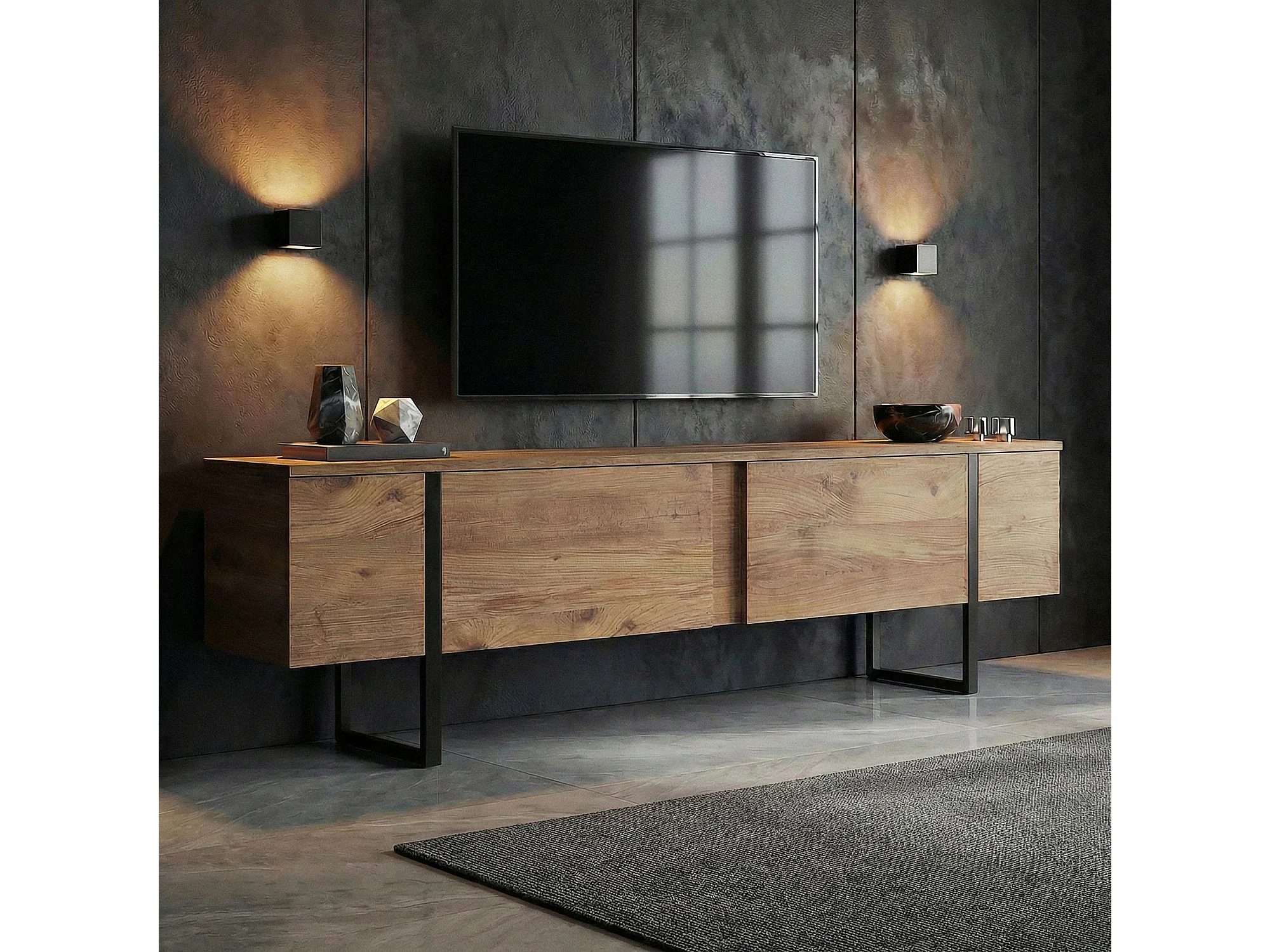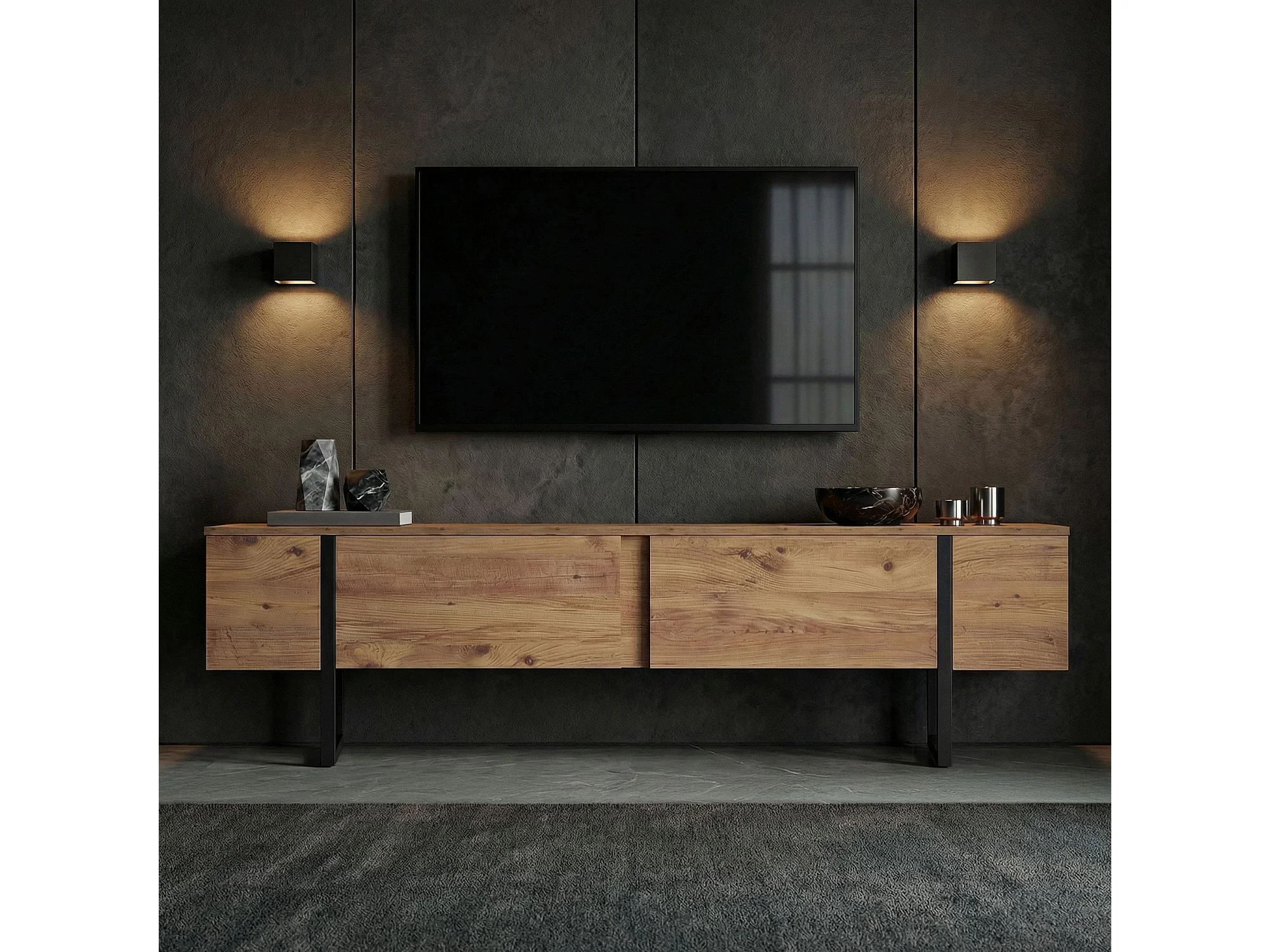 TV-Möbel aus Holz "Onera" - 180 x 30 x 50 cm - Atlantikkiefer / Schwarz