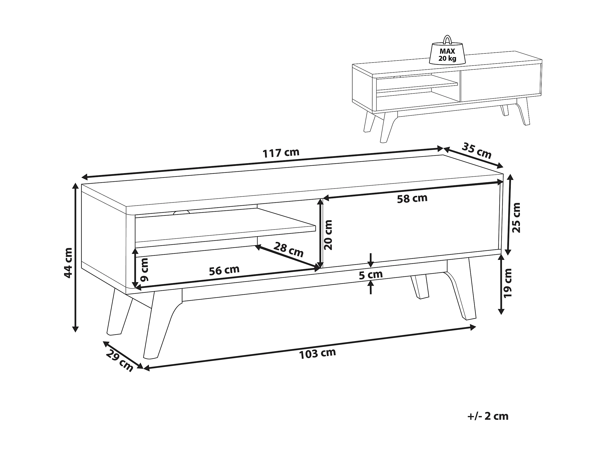 Fernsehtisch moderner Stil 2 Fächer MDF-Platte dunkler Holzfarbton/weiß Buffalo