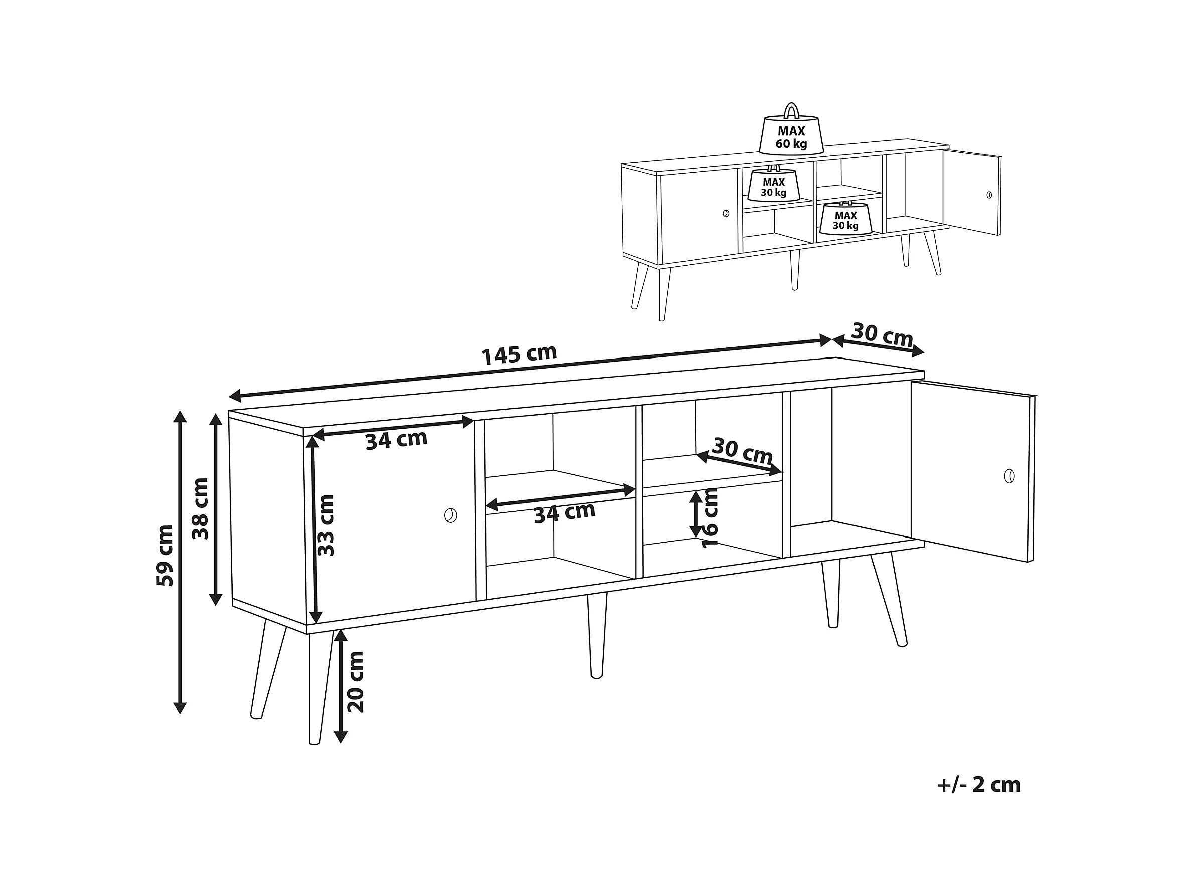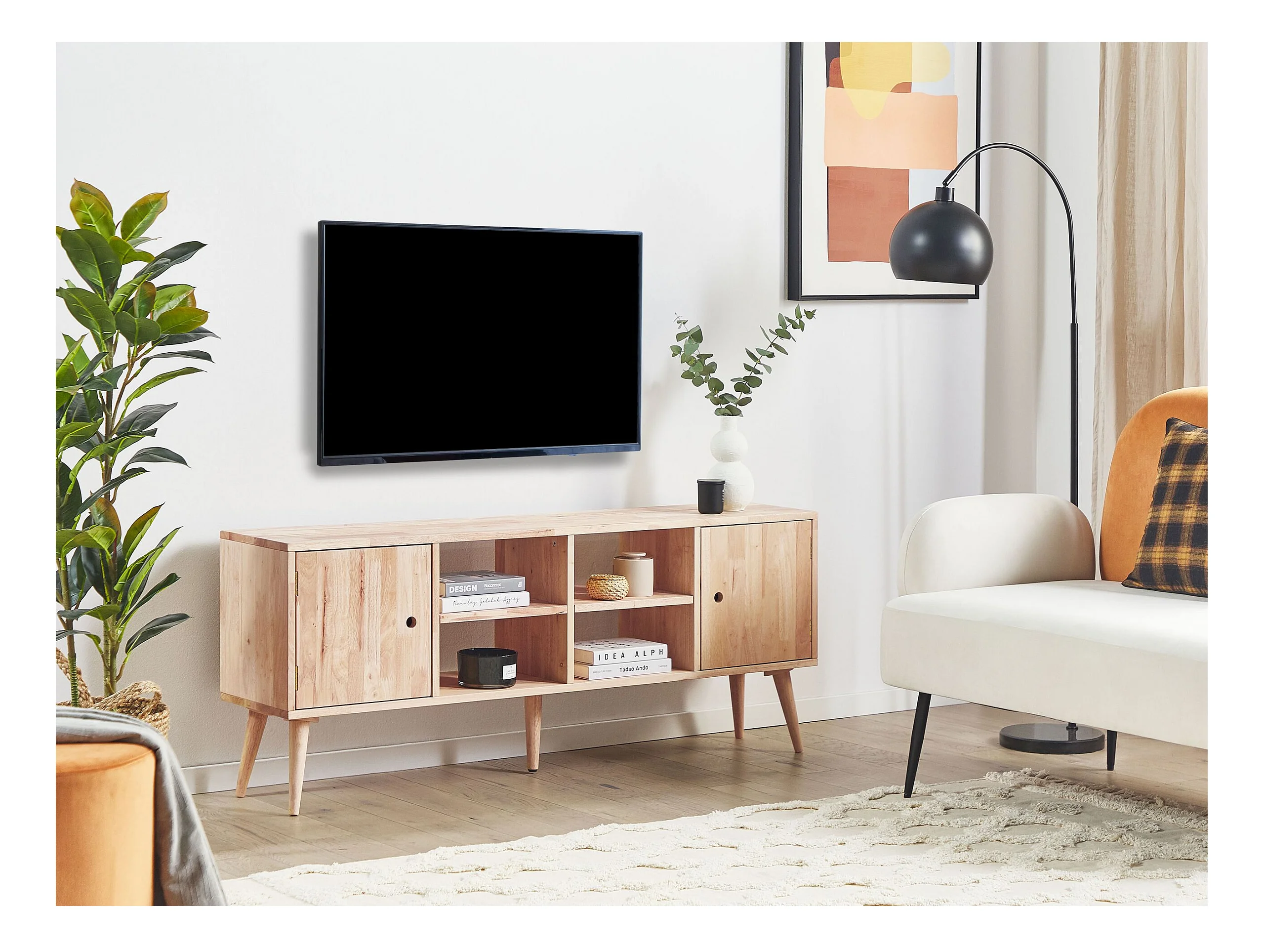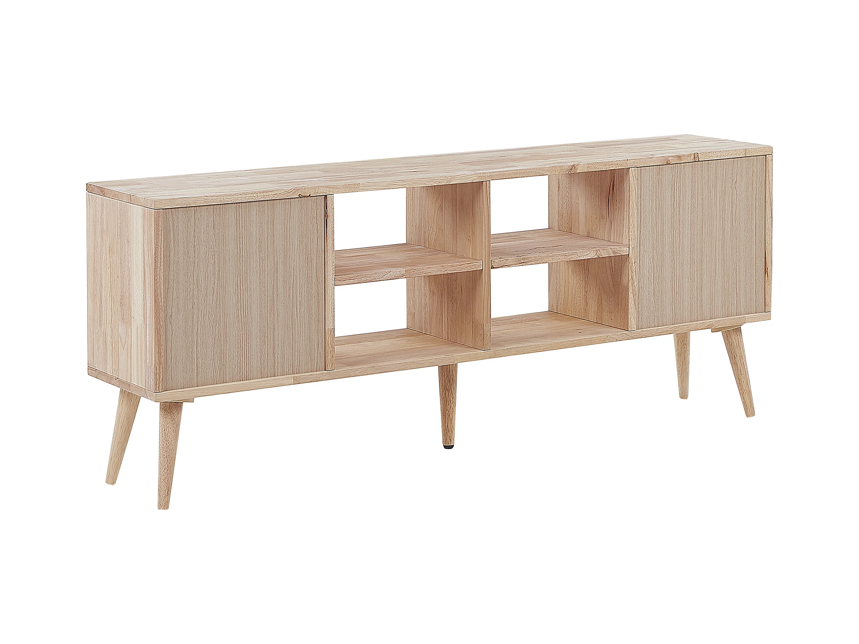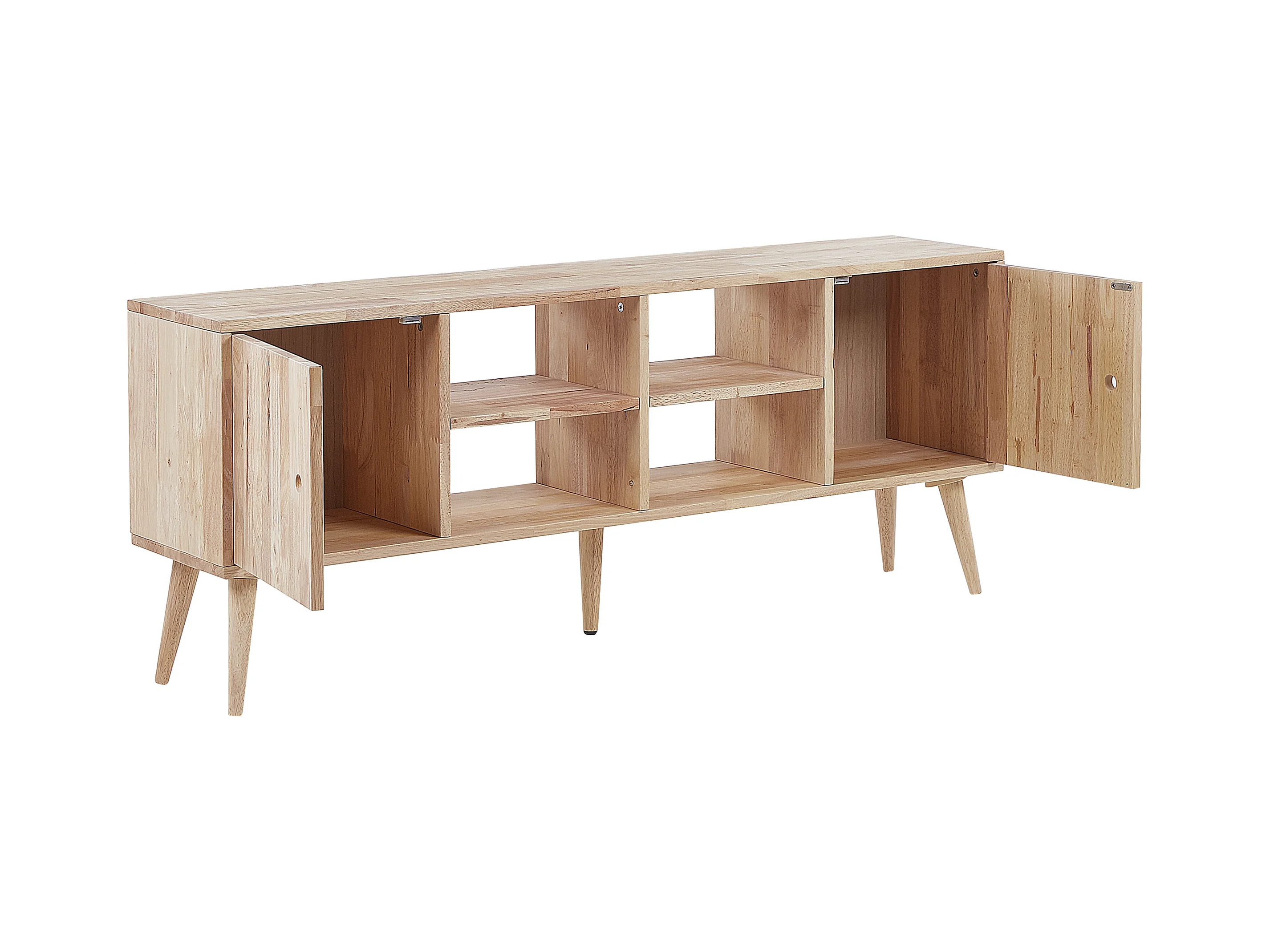 Moderner TV-Schrank hellbraun aus Gummibaumholz 2 Türen 4 offene Fächer Chandler