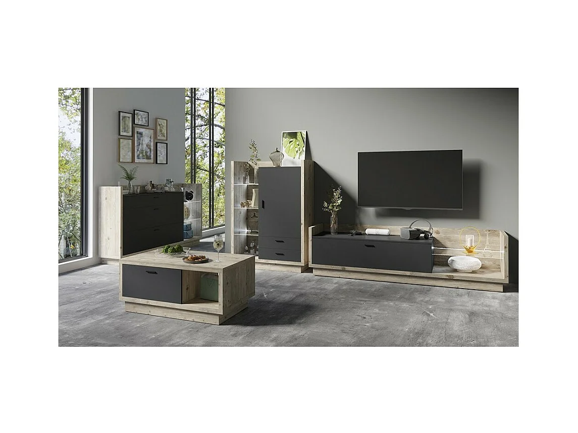 TV-Möbel Kollektion CORK mit LED - Farbe Kiefer und Anthrazitgrau - Maße 220 x 58 x 48 cm