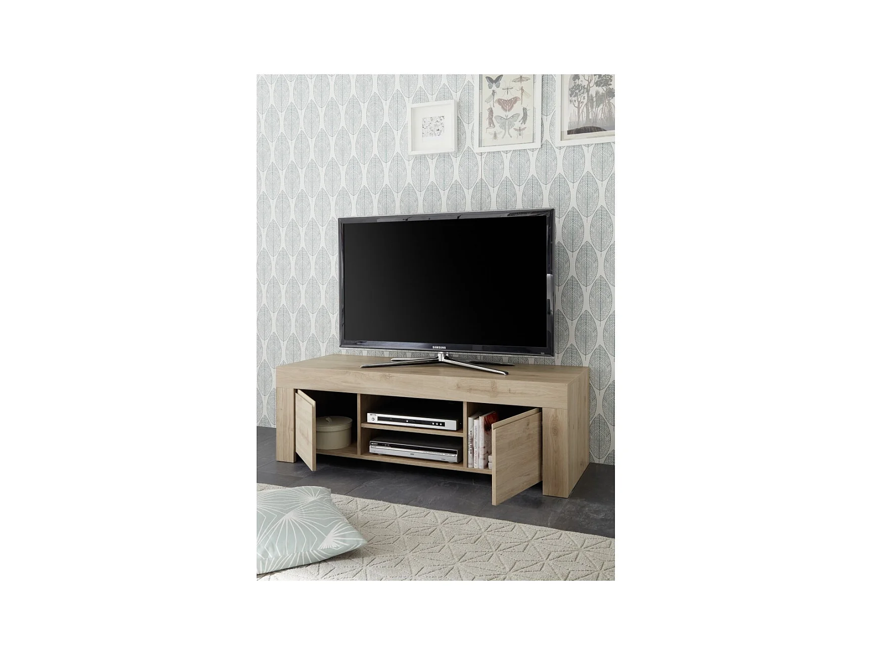 TV-Möbel mit 2 Türen, Kollektion ZEFIR, Farbe helles Eichenholz, ideal für ein trendiges und modernes Wohnzimmer.