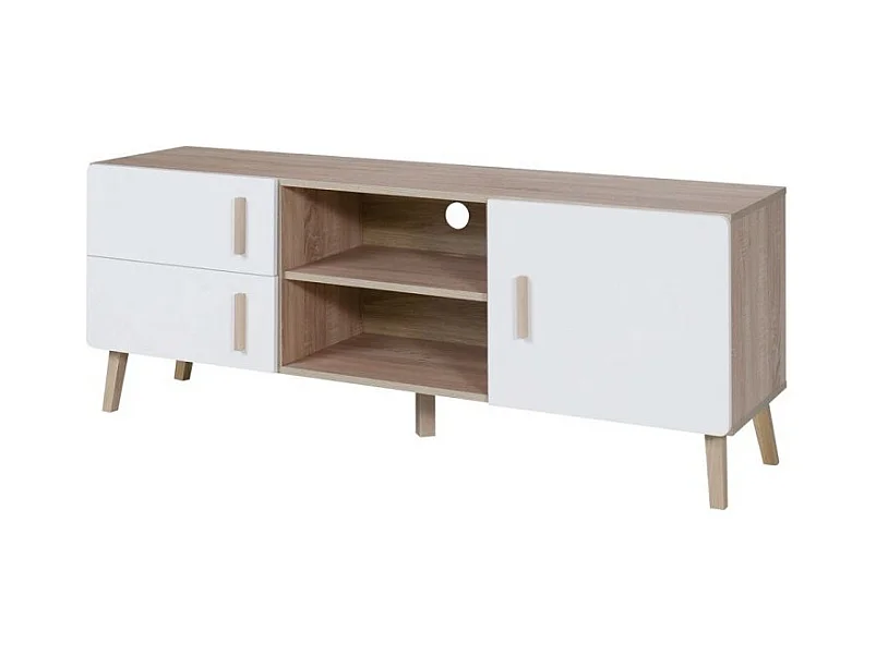 TV-Möbel OSLO - Farbe Eiche und Weiß - Skandinavischer Stil - 150 x 57 x 40 cm