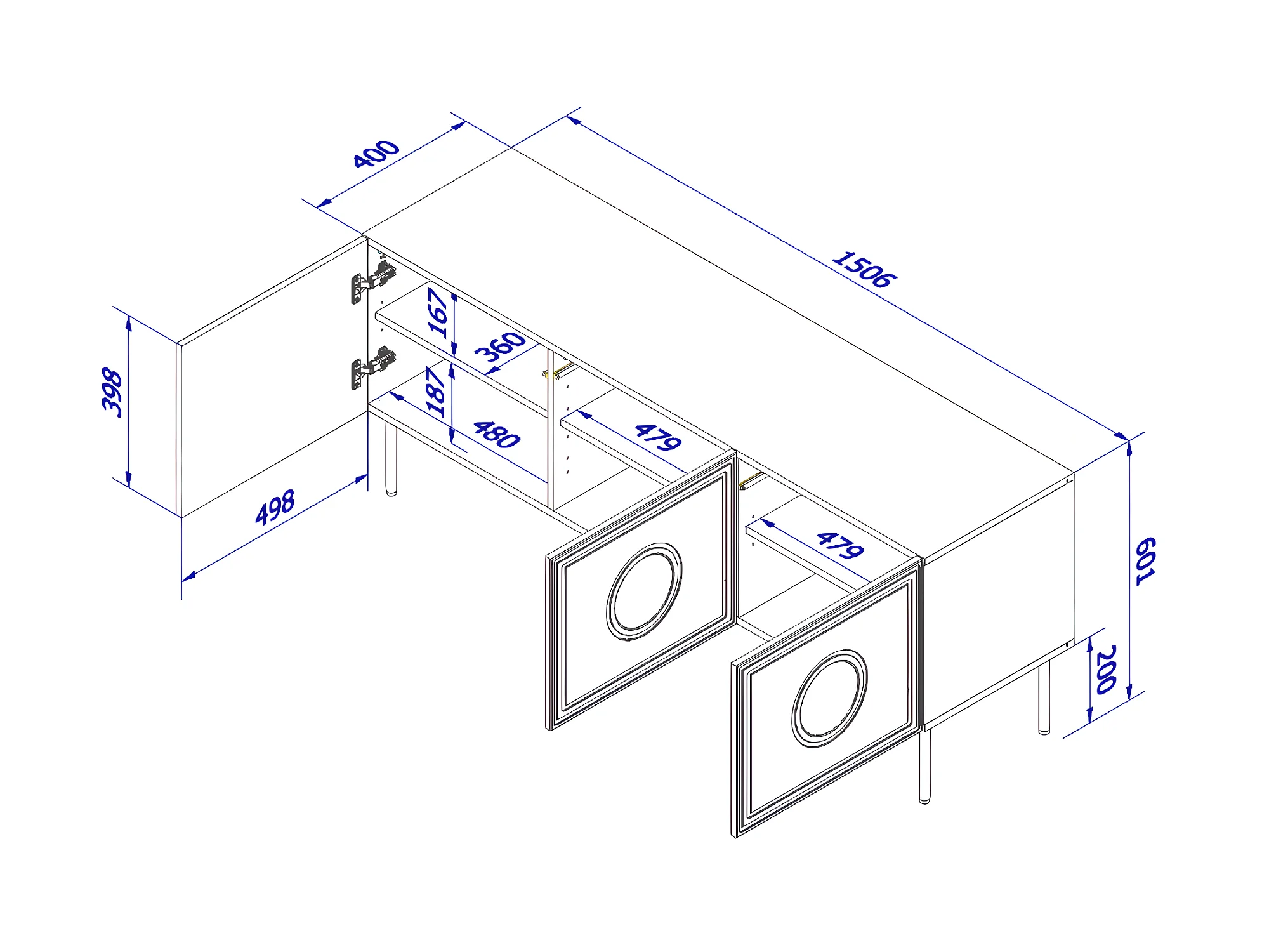 TV-Möbel PALACE 150 cm 3D Schwarz matt / Craft Eiche