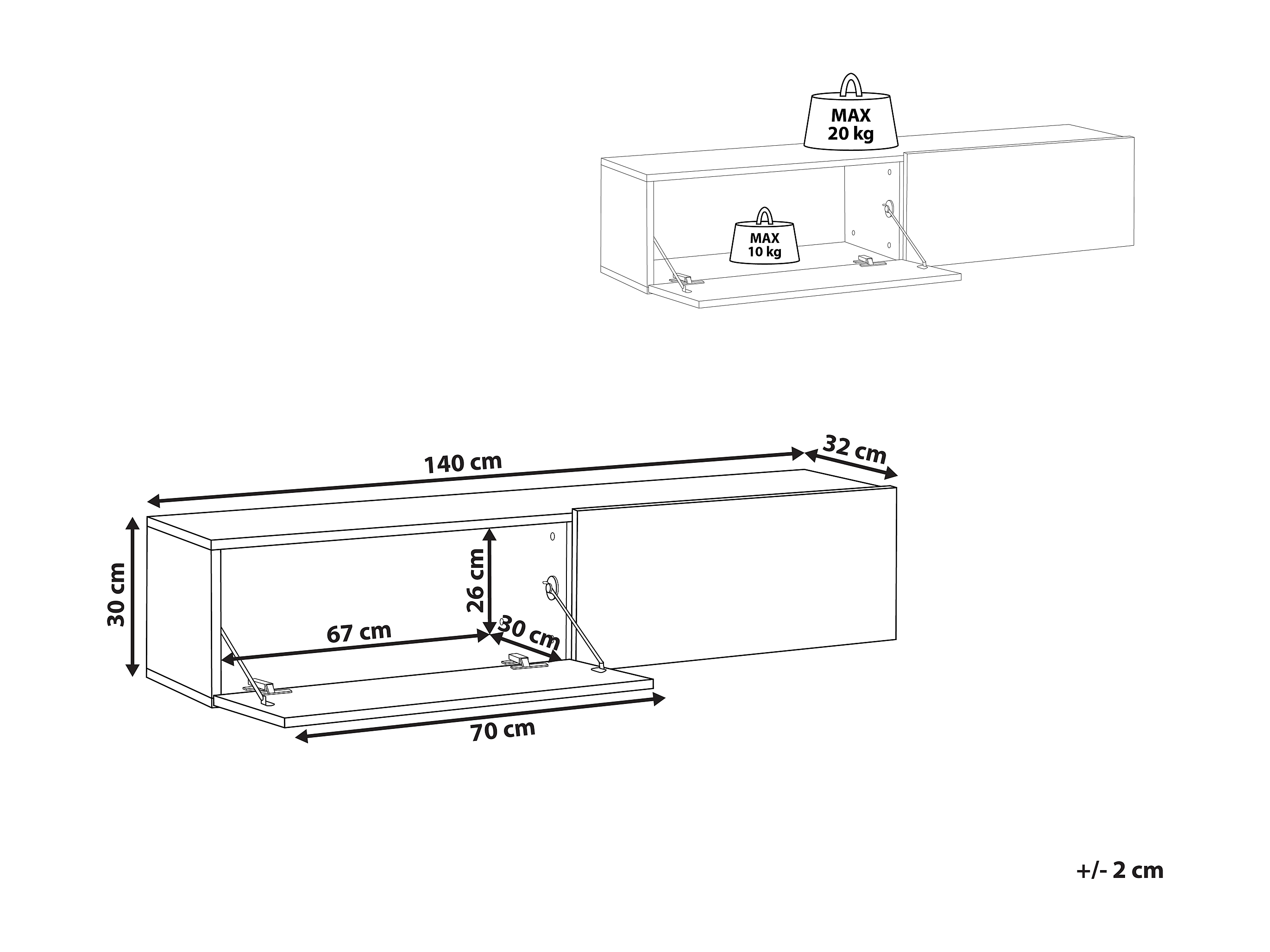 TV-Möbel schmal wandhängend Holzoptik braun 140 cm mit 2 Türen modern Gladstone