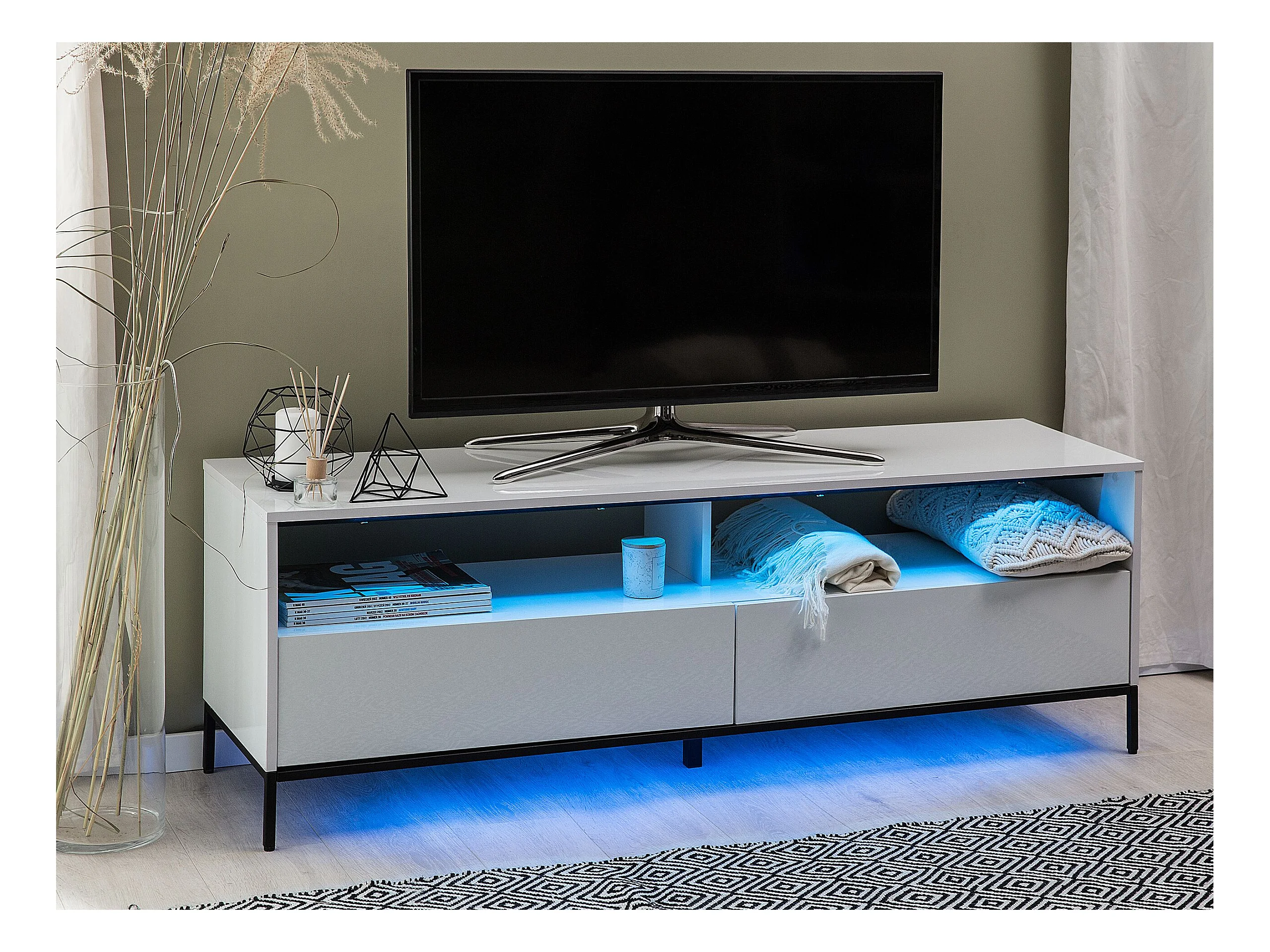 Stylisches TV-Möbel in elegantem Weiss mit Hochglanz und LED-Beleuchtung Sydney
