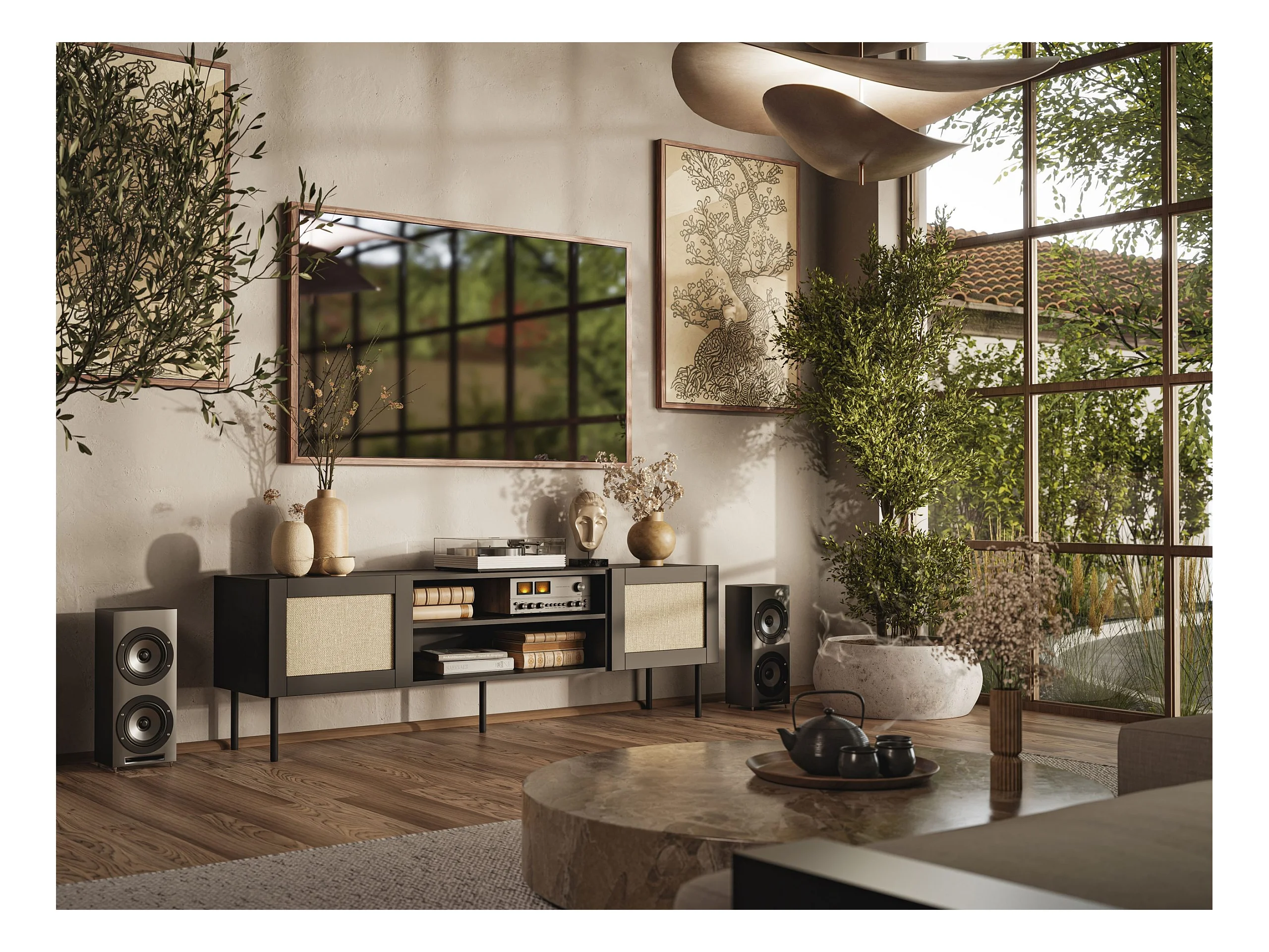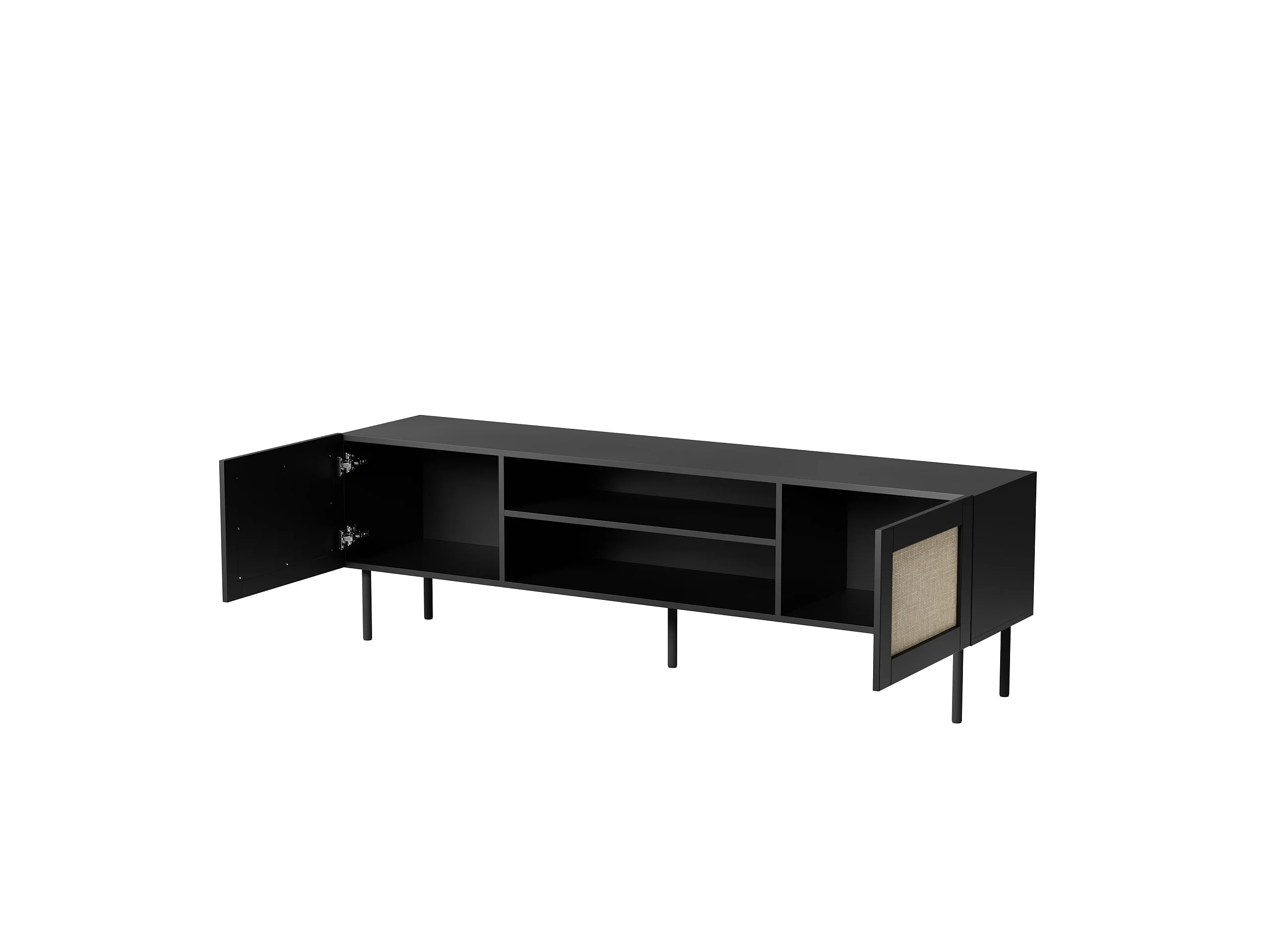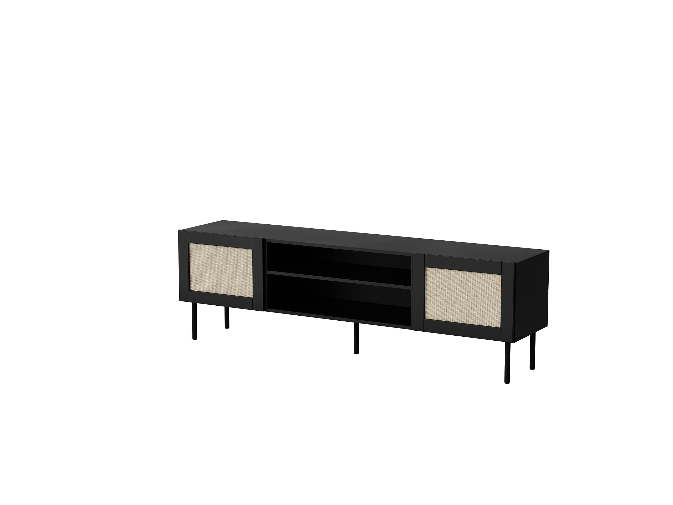 TV-Möbel YUCCA 180 cm Schwarz Matt/ Calabria-Rattan