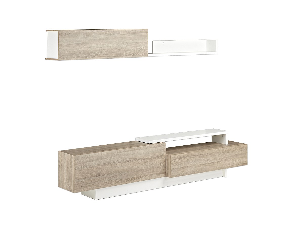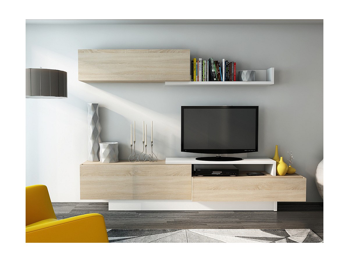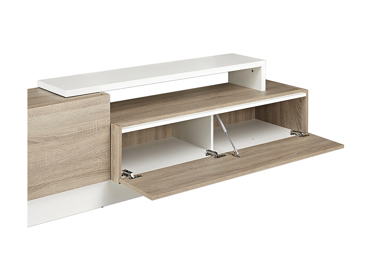 TV-Wand mit Stauraum MONTY - Eichenholzfarben/Weiß