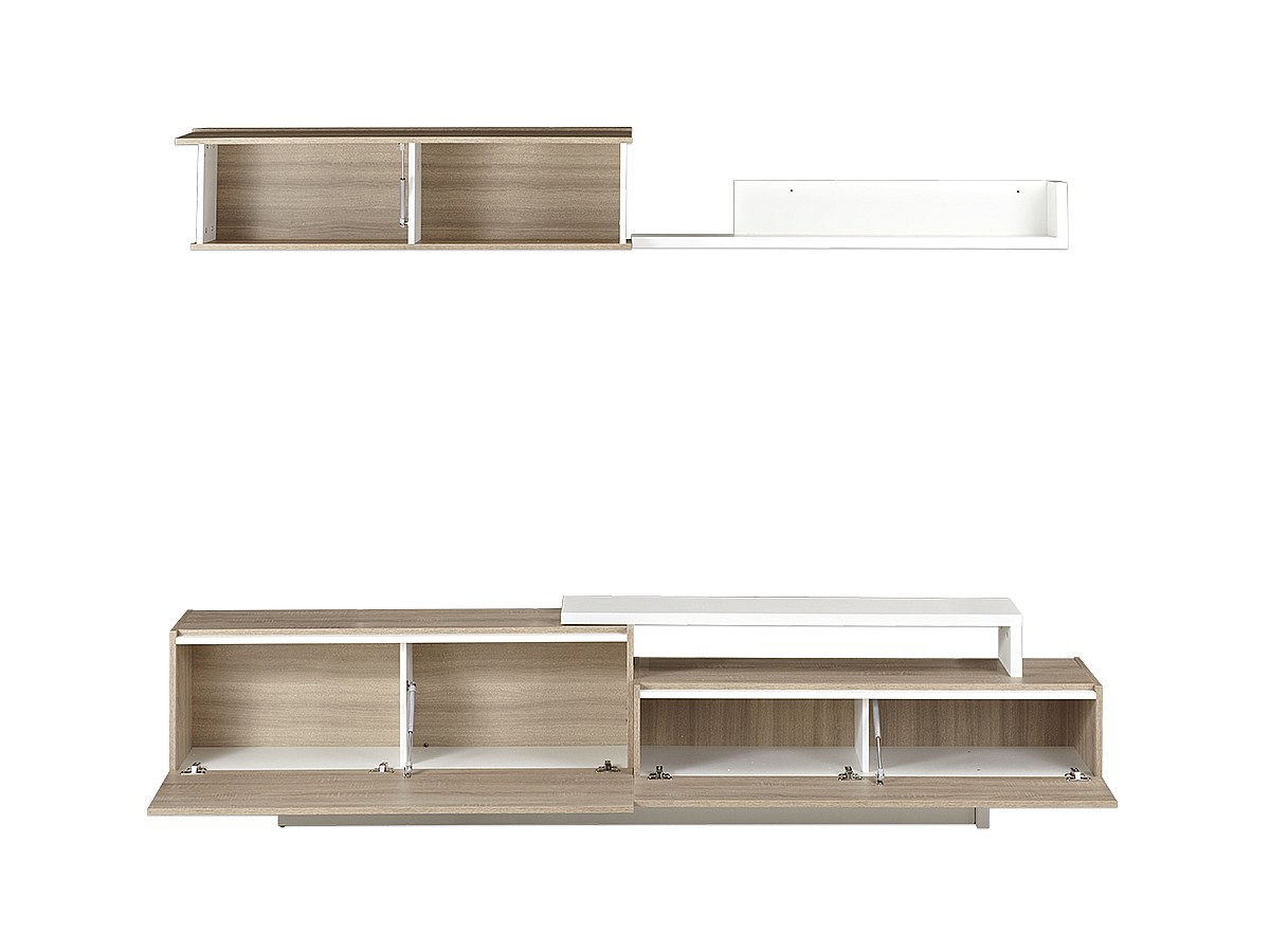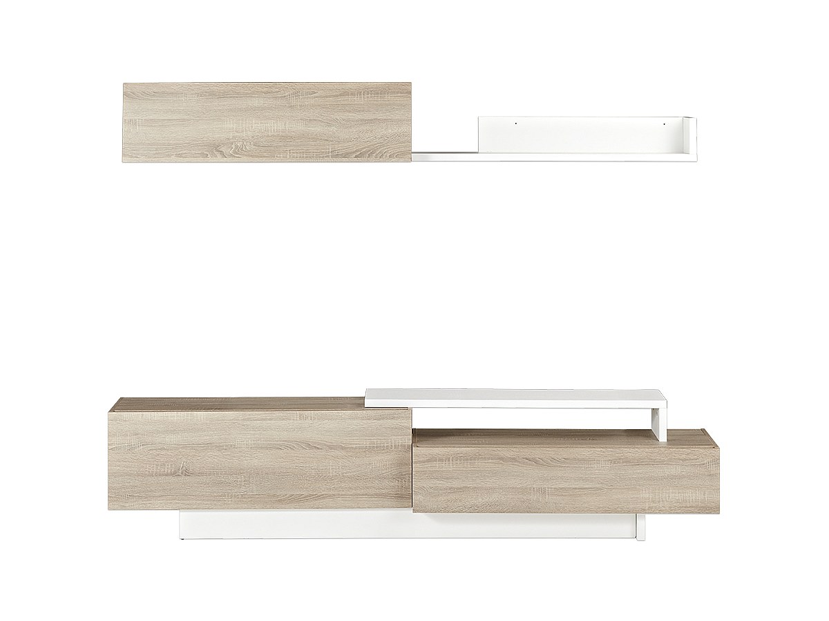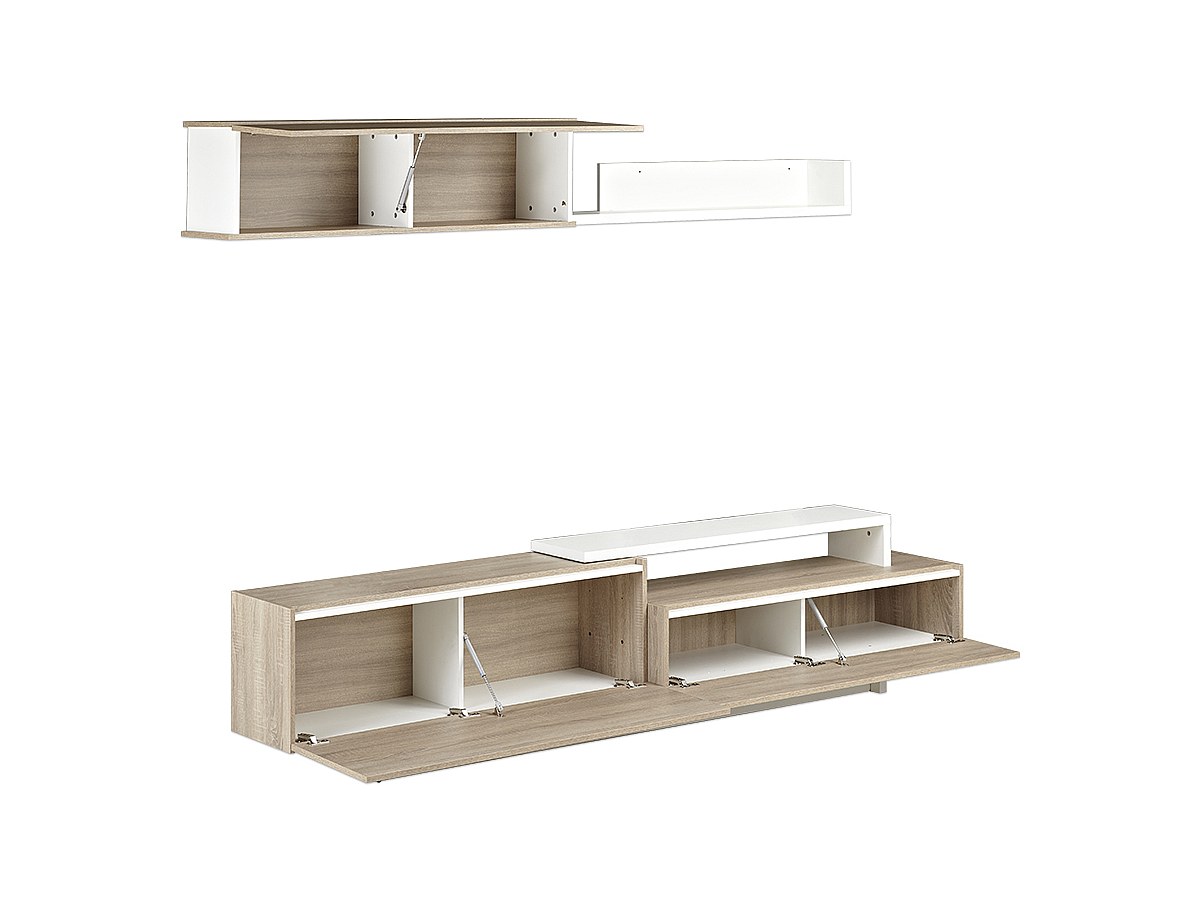 TV-Wand mit Stauraum MONTY - Eichenholzfarben/Weiß