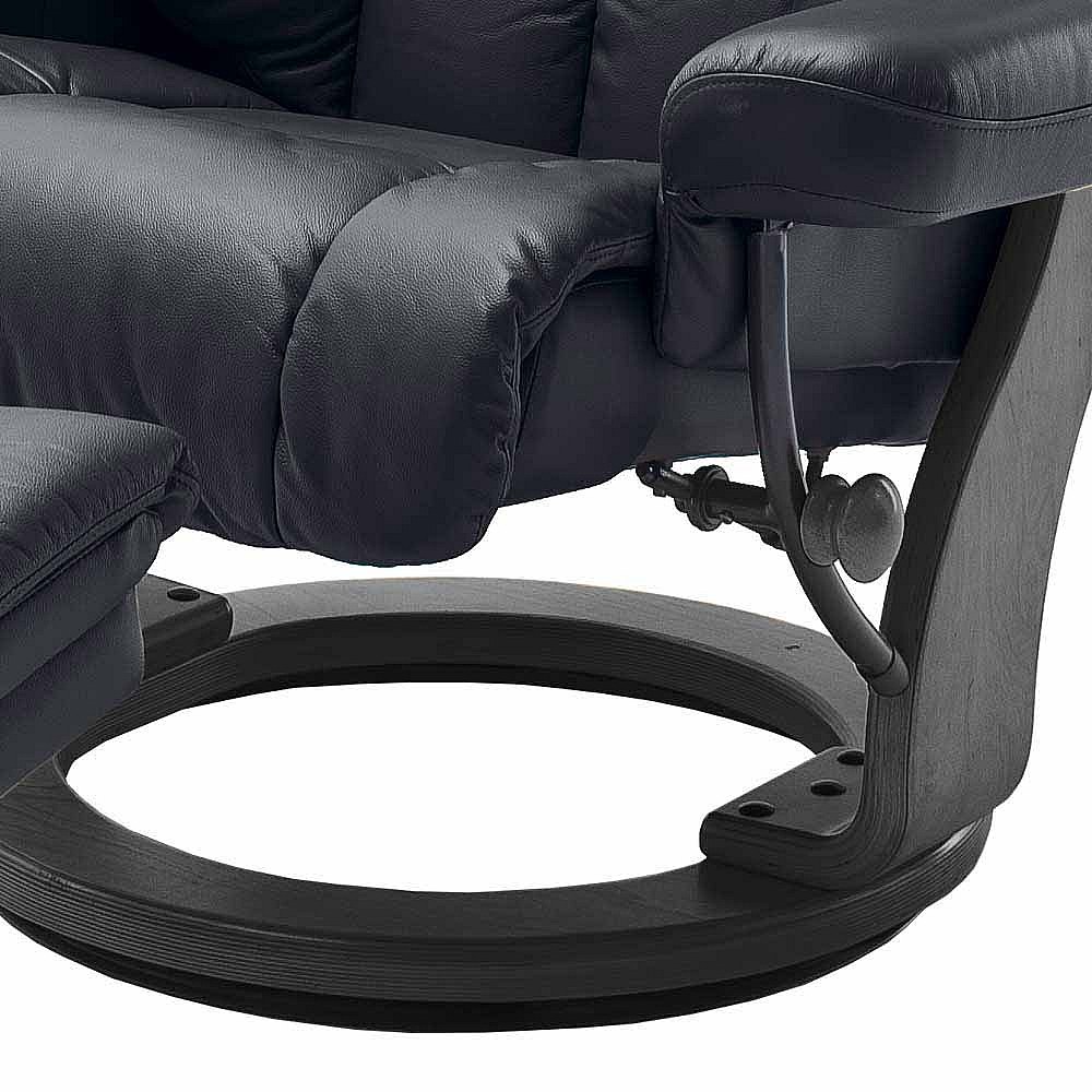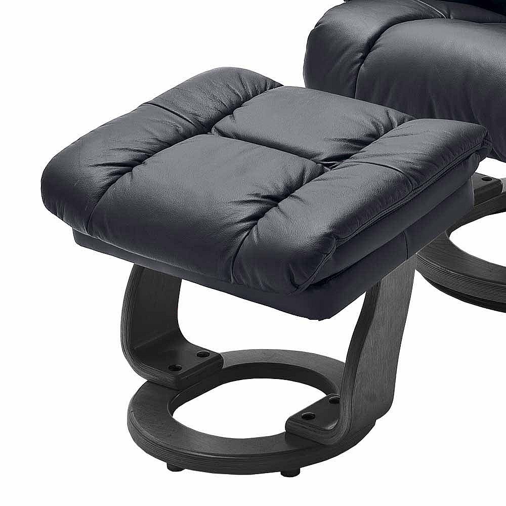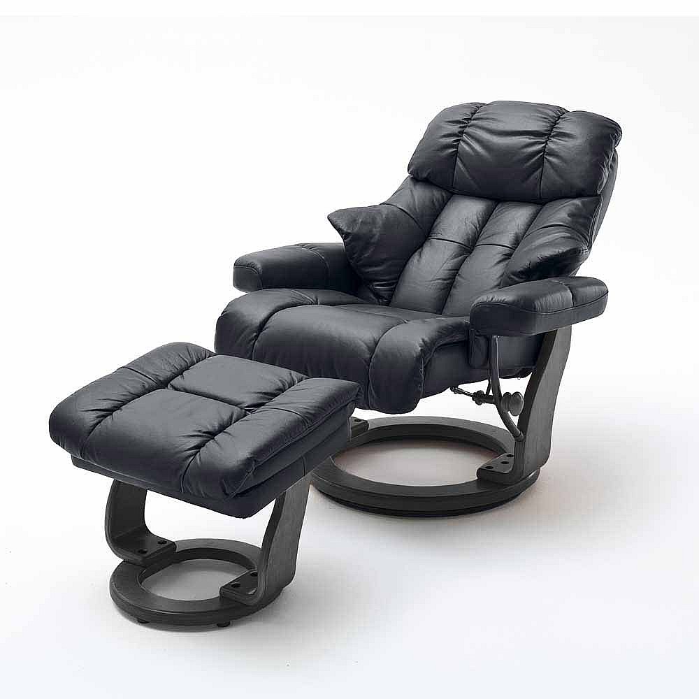 TV Relaxsessel aus Leder Schwarz mit Hocker (zweiteilig)