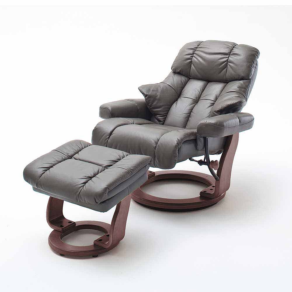 TV Relaxsessel in Schlamm Leder mit Hocker (zweiteilig)