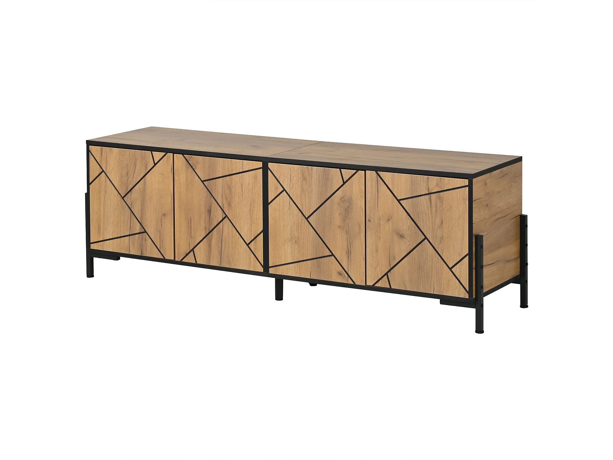 TV-Schrank 153x40x50 cm - 4 Türen - TV bis zu 65 Zoll - Stabile Füße - MDF - Natur