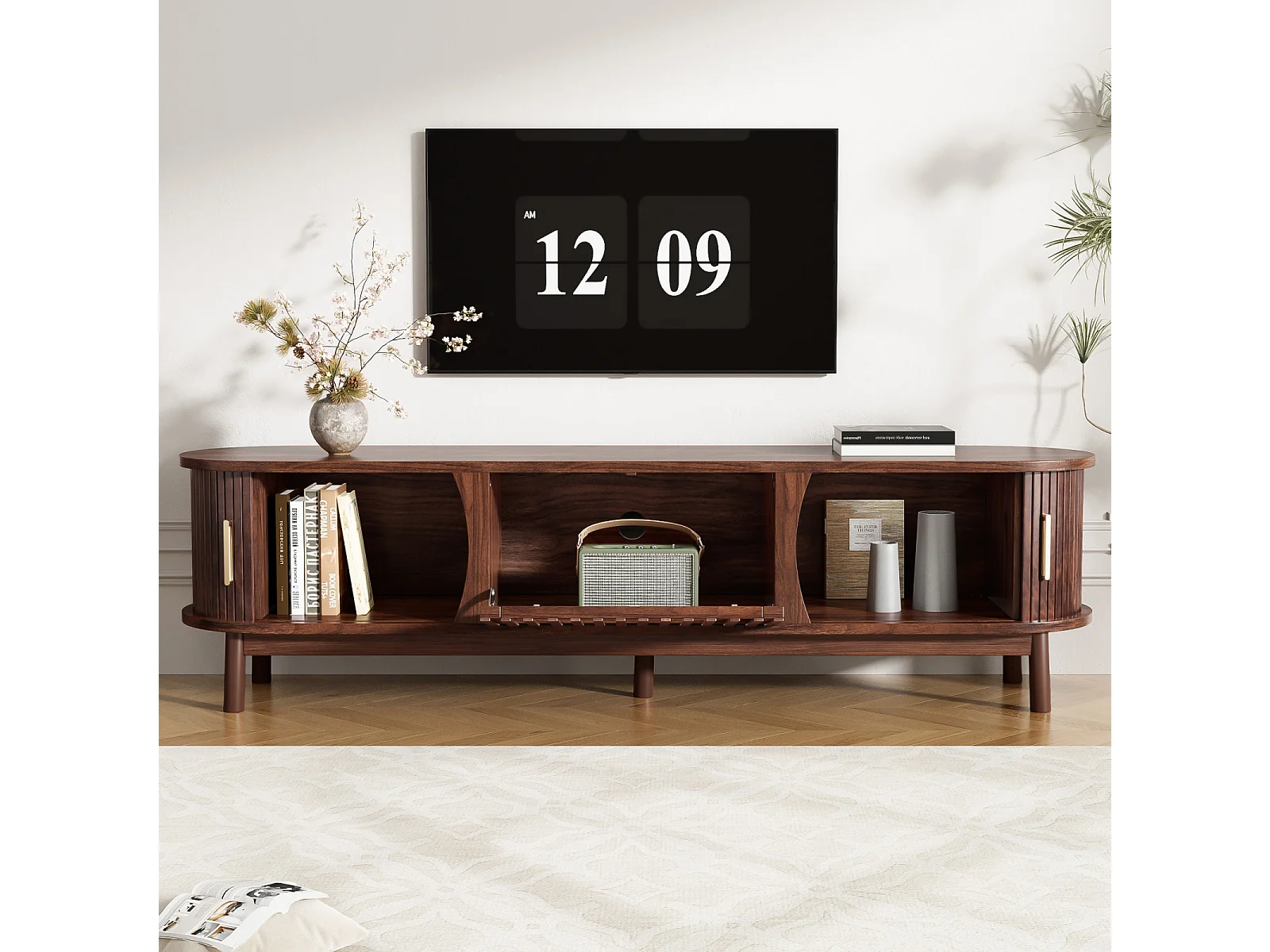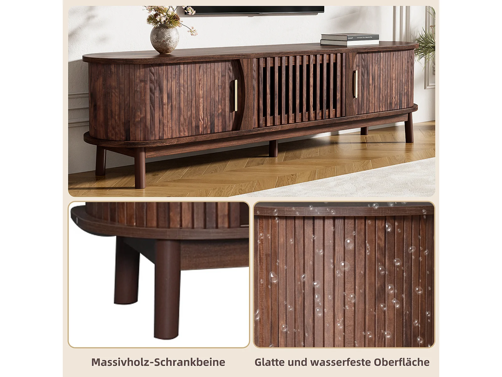 TV-Schrank 165x39,5x46cm braun, Schiebetür, klappbare Tür, für bis 65 Zoll