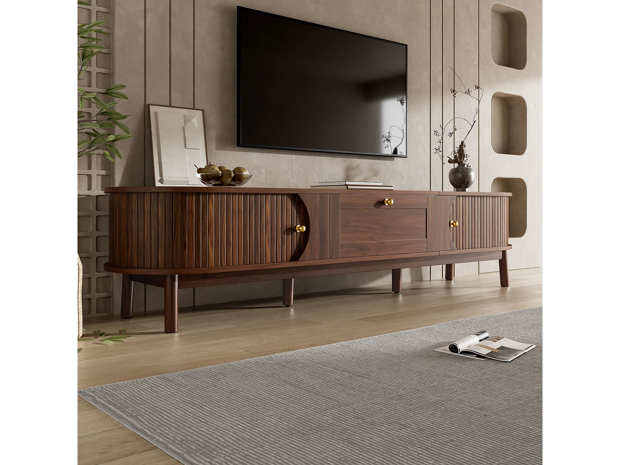 TV-Schrank 170x39,5x38 cm - mit 1 Schublade und 2 Schiebetüren - Holzoptik - MDF - Braun