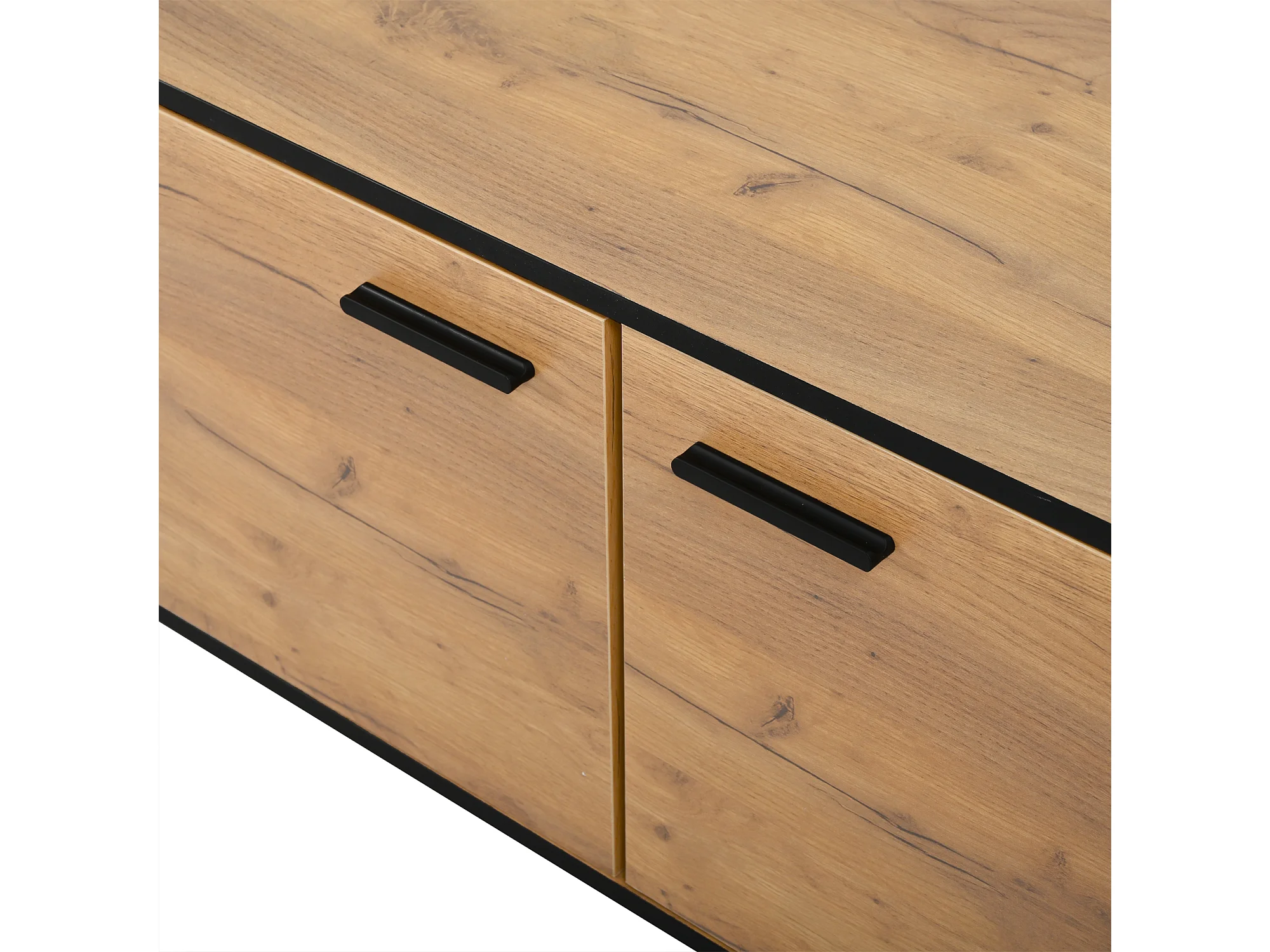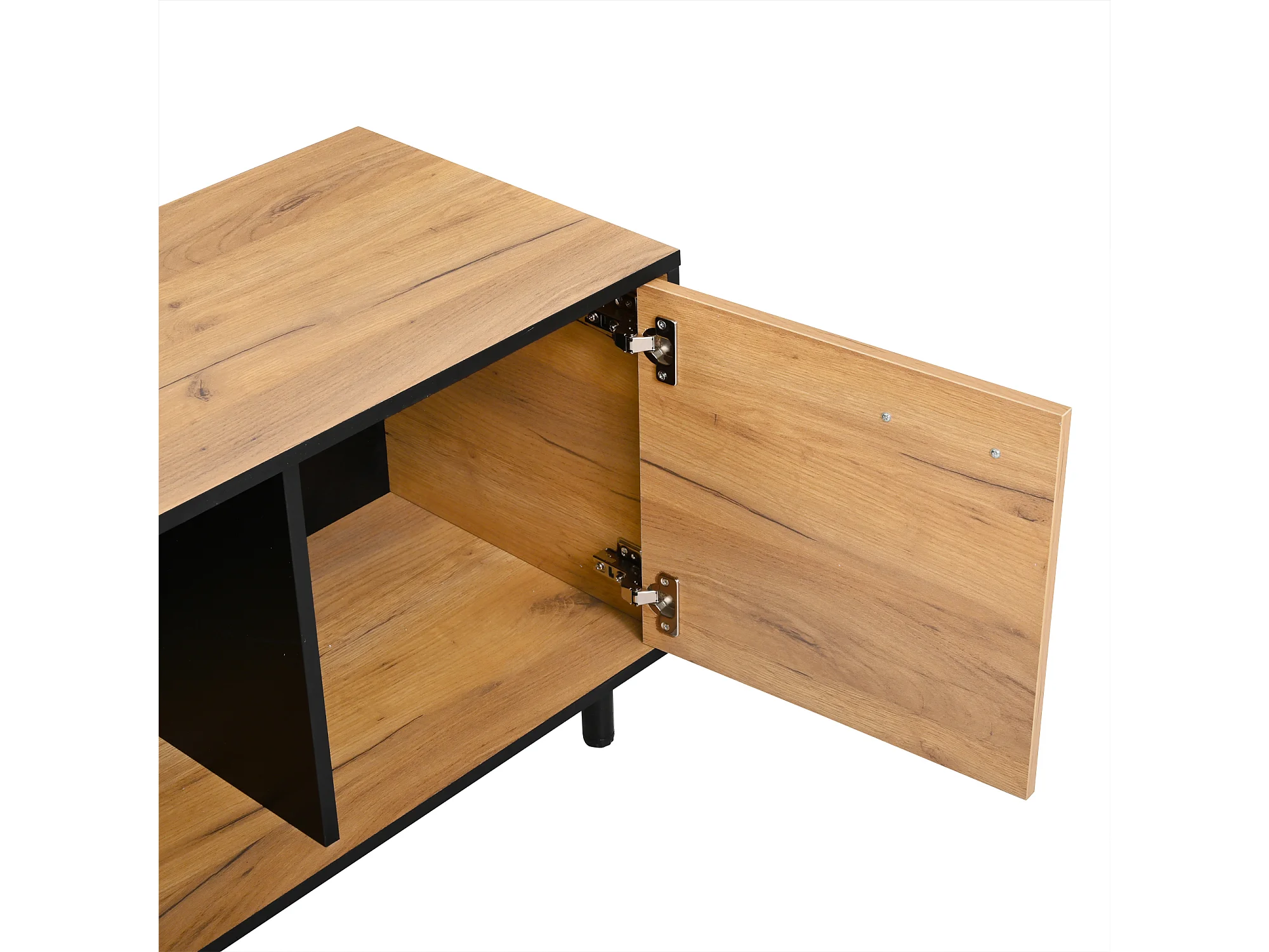 TV-Schrank 180x32.5x50 cm - 3 Türen und 1 Schublade - Halboffene Ablage - Spanplatten - Schwarz und natur