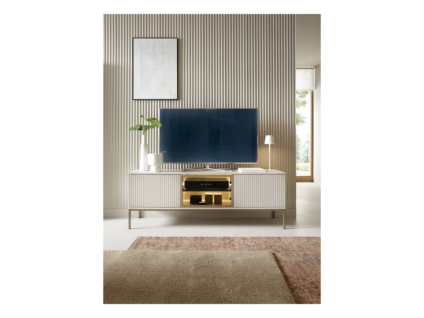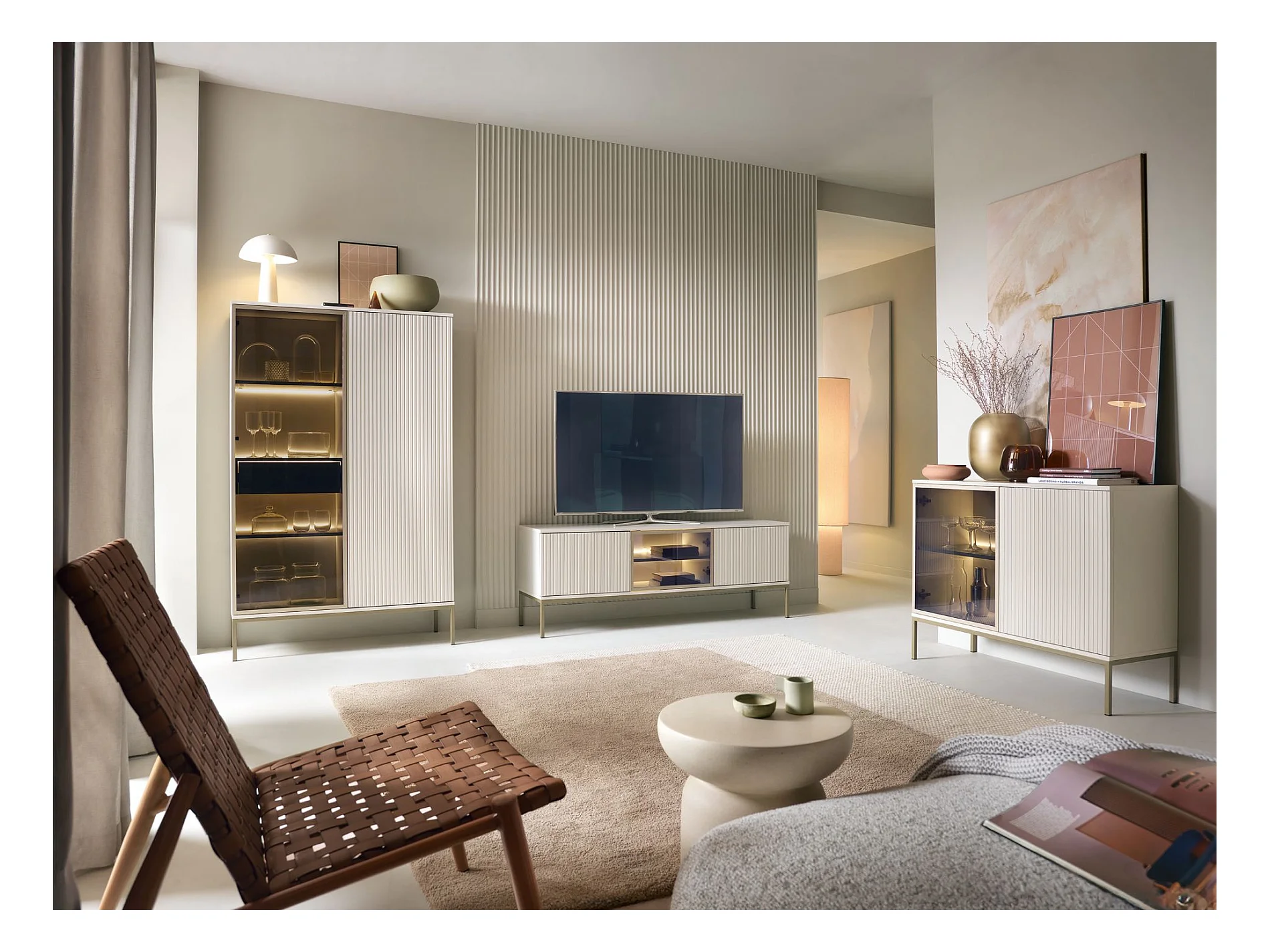 TV-Schrank - 3-türig mit LED-Beleuchtung - Greige - 154 cm - TOSENA