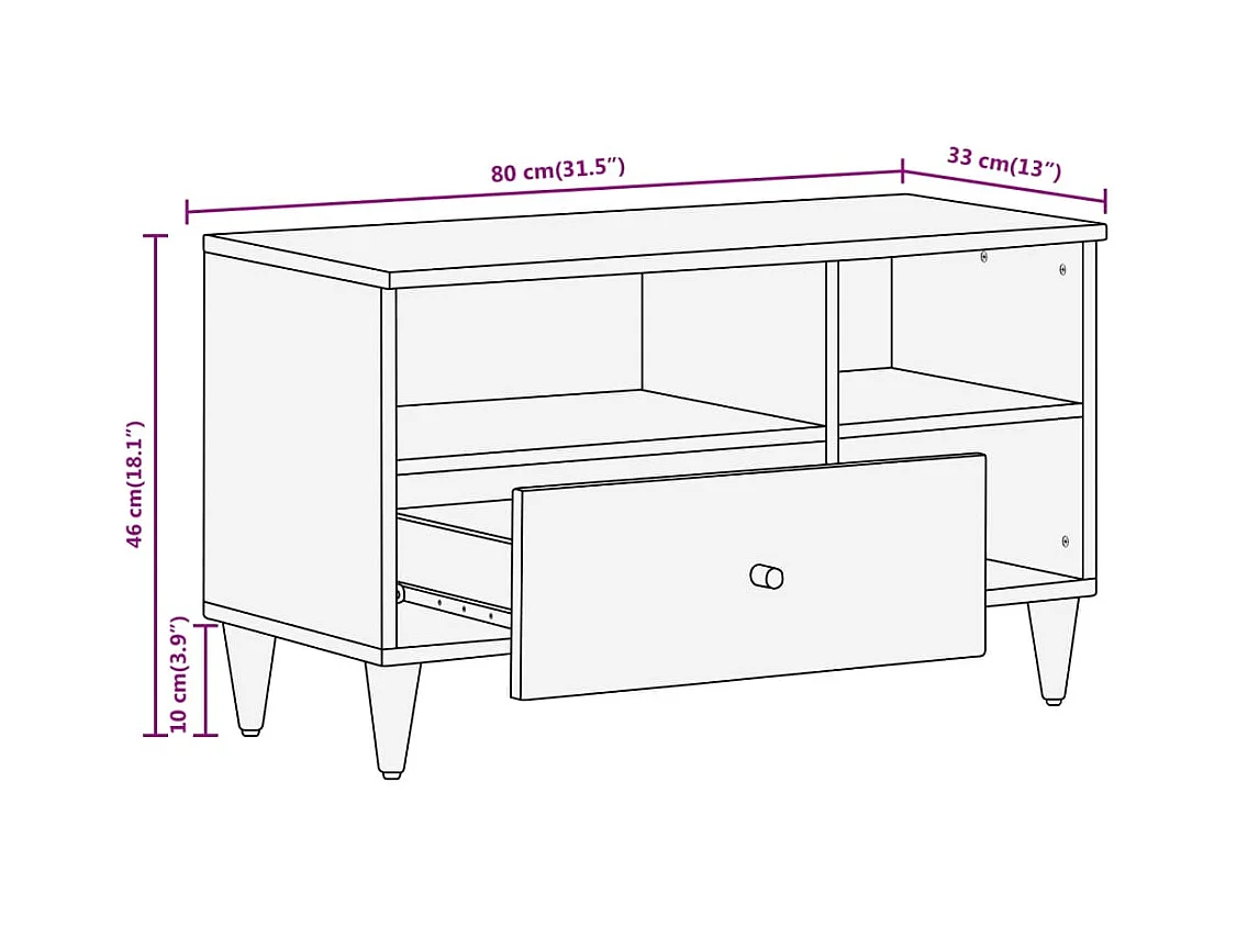 TV-Schrank 80x33x46 cm Massivholz Mango