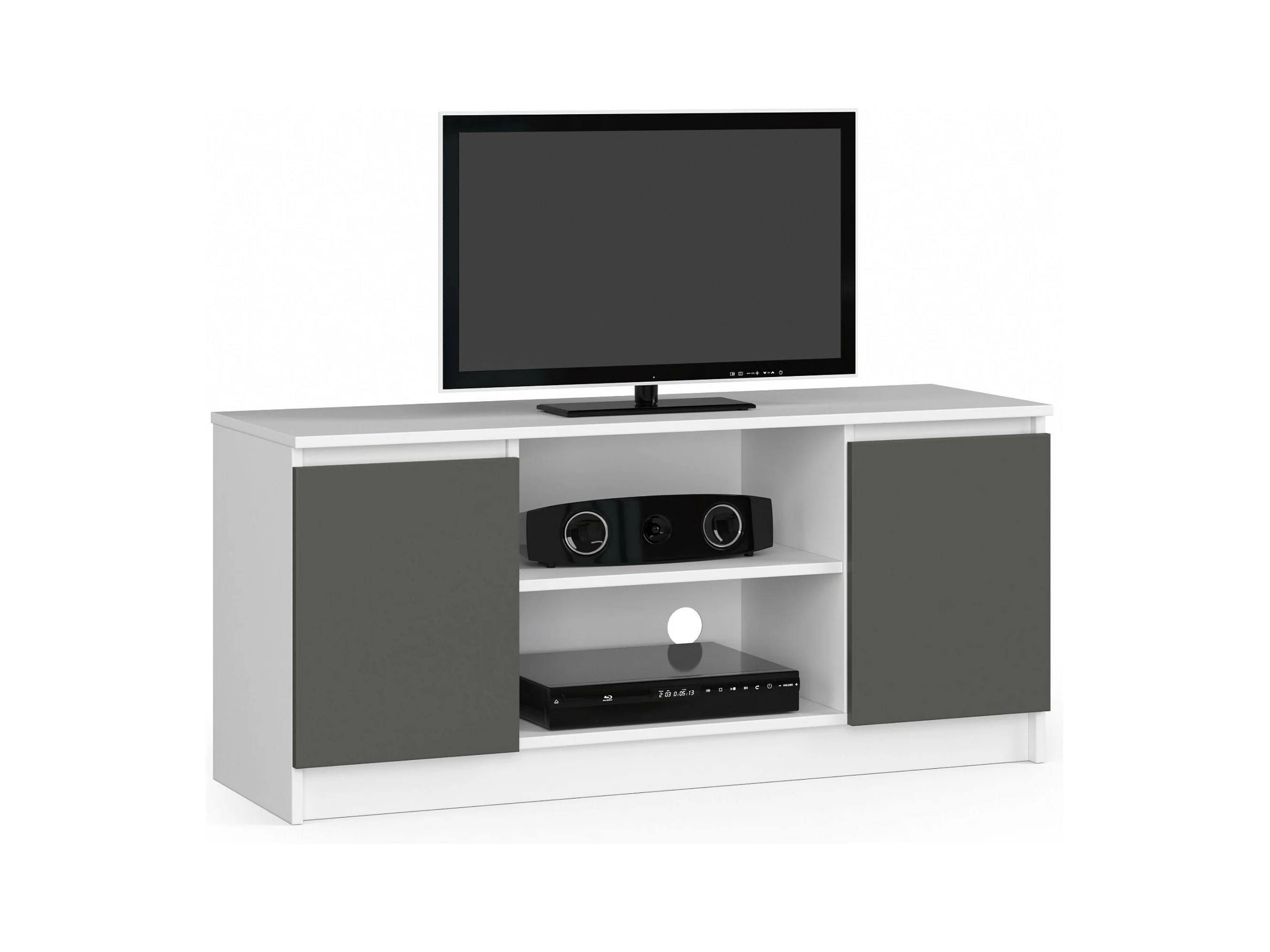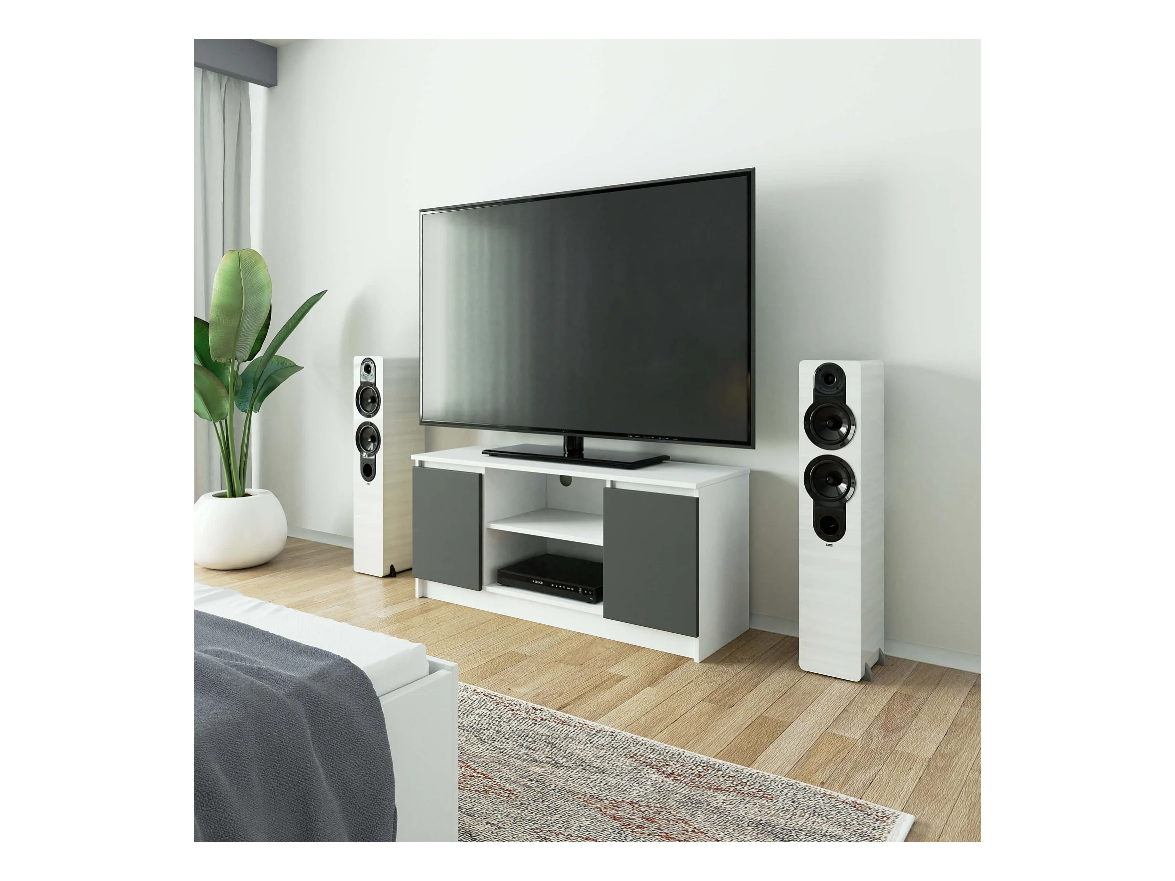 TV Schrank AKORD Fernsehkommode 120 cm Weiß 2 Türen 2 Ebenen Front Graphitgrau B120 x H55 x T40 cm