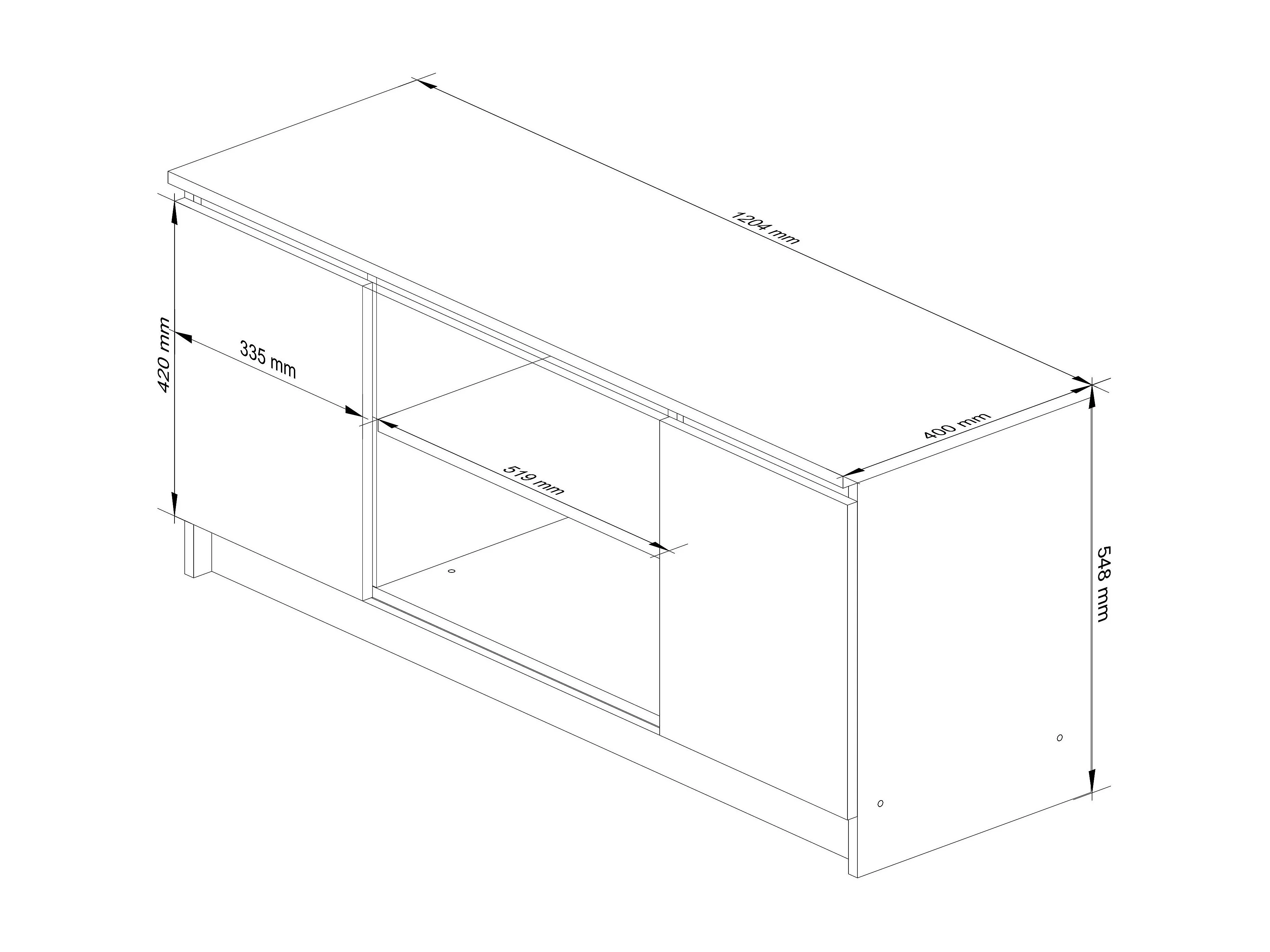 TV Schrank AKORD Fernsehkommode 120 cm Weiß 2 Türen 2 Ebenen Front Sonoma-Eiche B120 x H55 x T40 cm