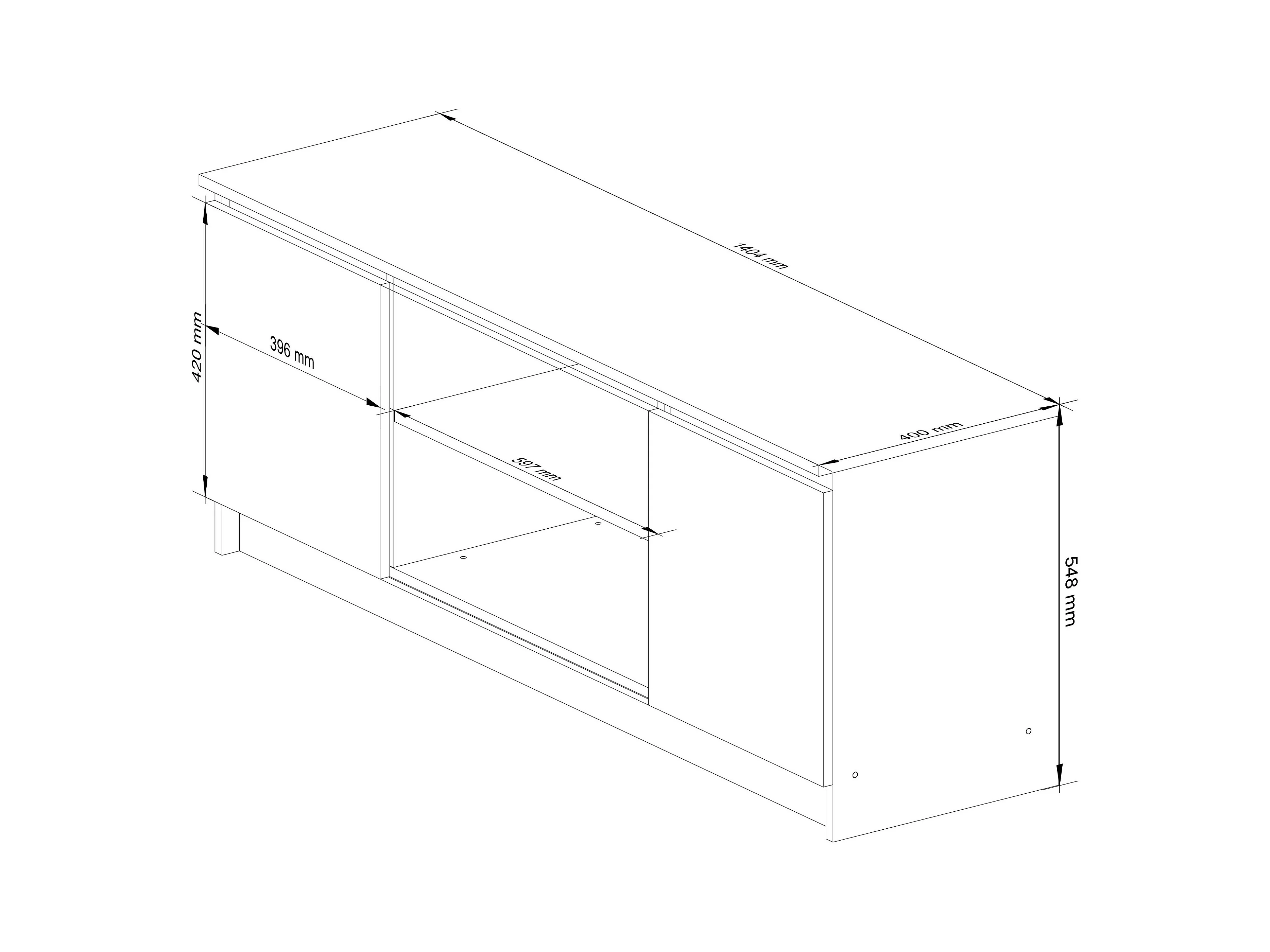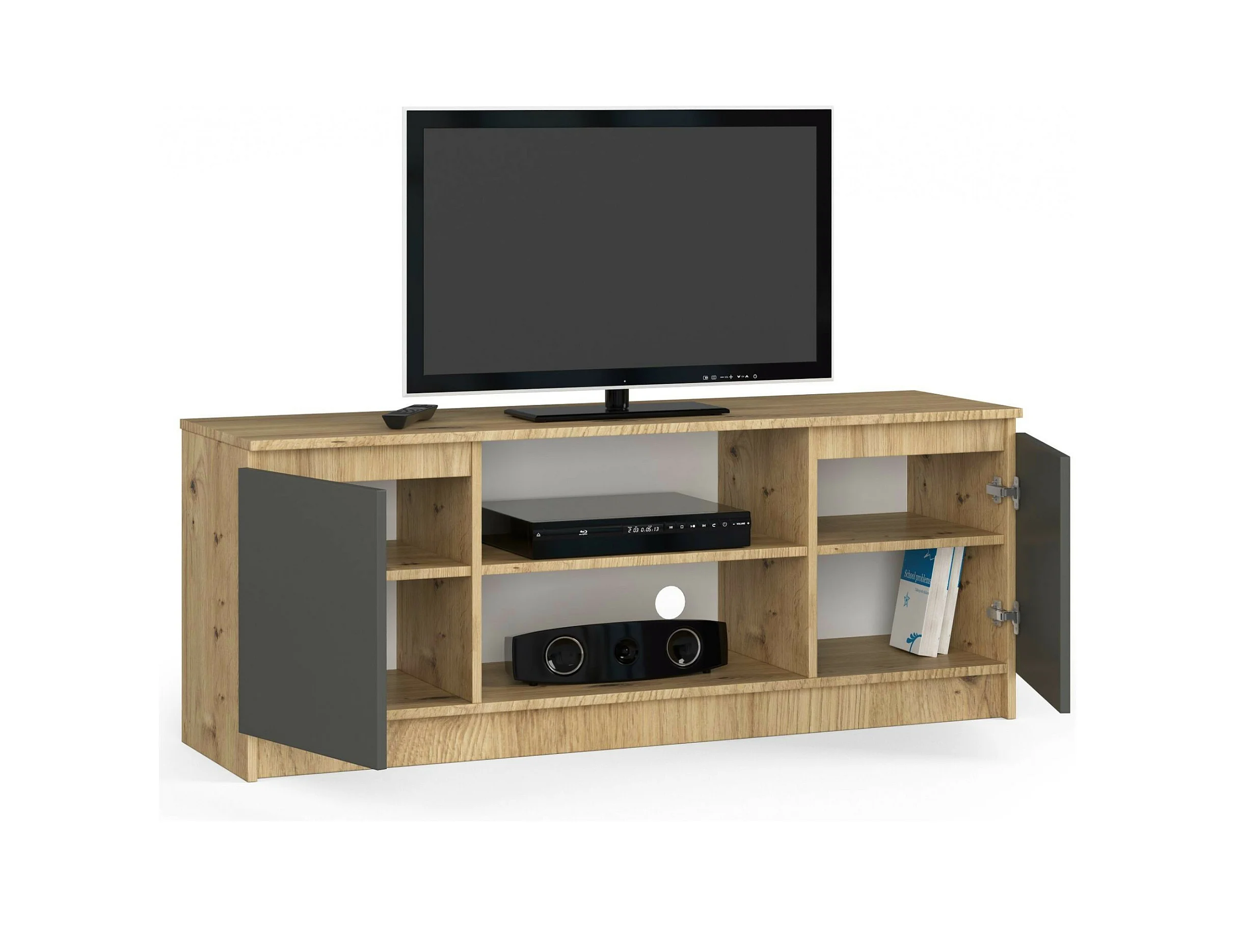 TV Schrank AKORD Fernsehkommode 140 cm Eiche Artisan 2 Türen 2 Ebenen Front Graphitgrau B140 x H55 x T40 cm