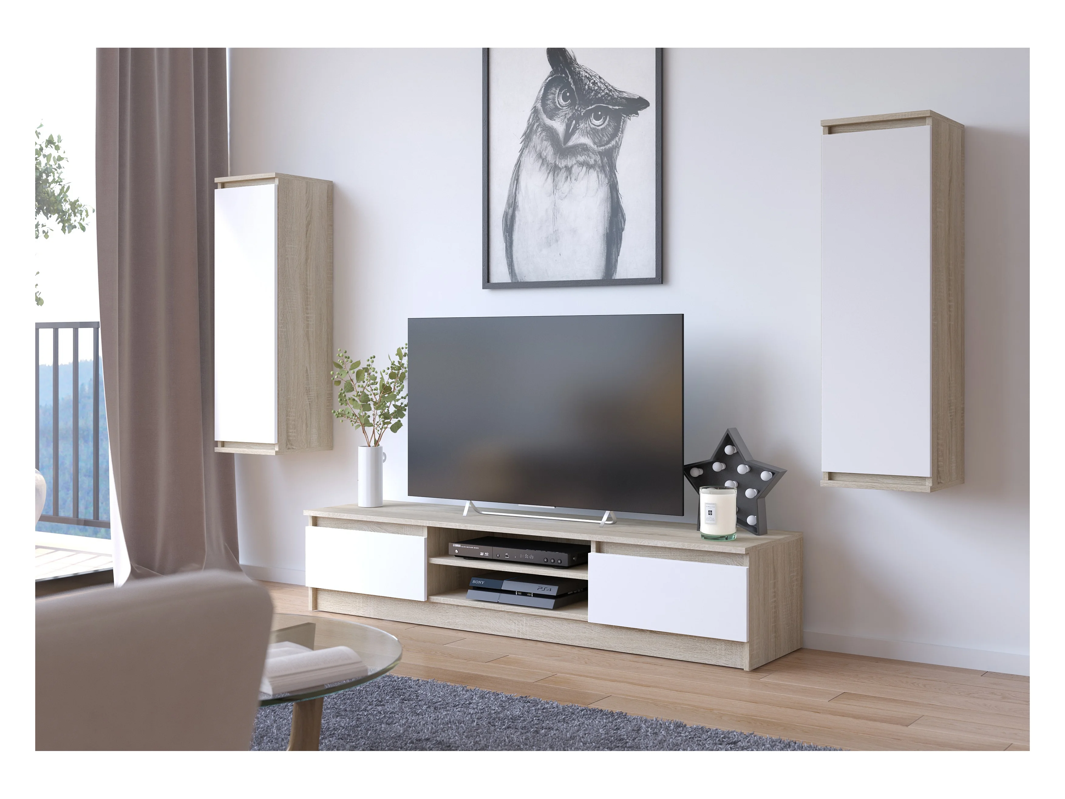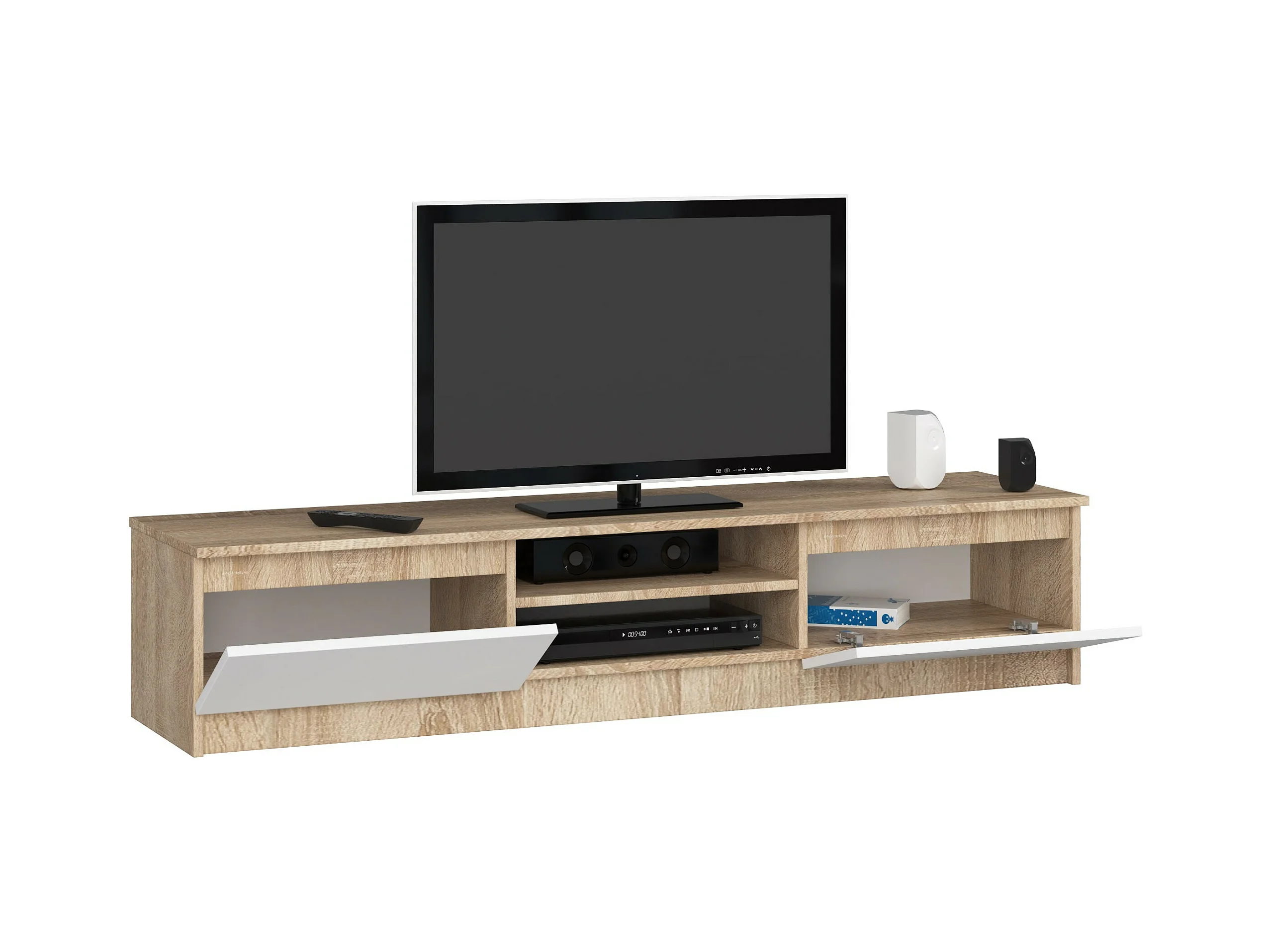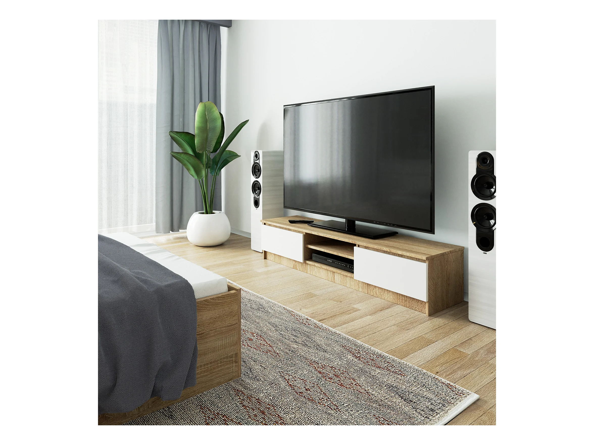 TV Schrank AKORD Fernsehkommode 160 cm Sonoma-Eiche 2 Türen 2 Ebenen Front Weiß B160 x H33 x T40 cm