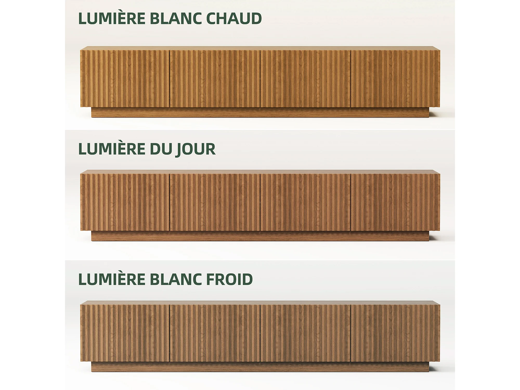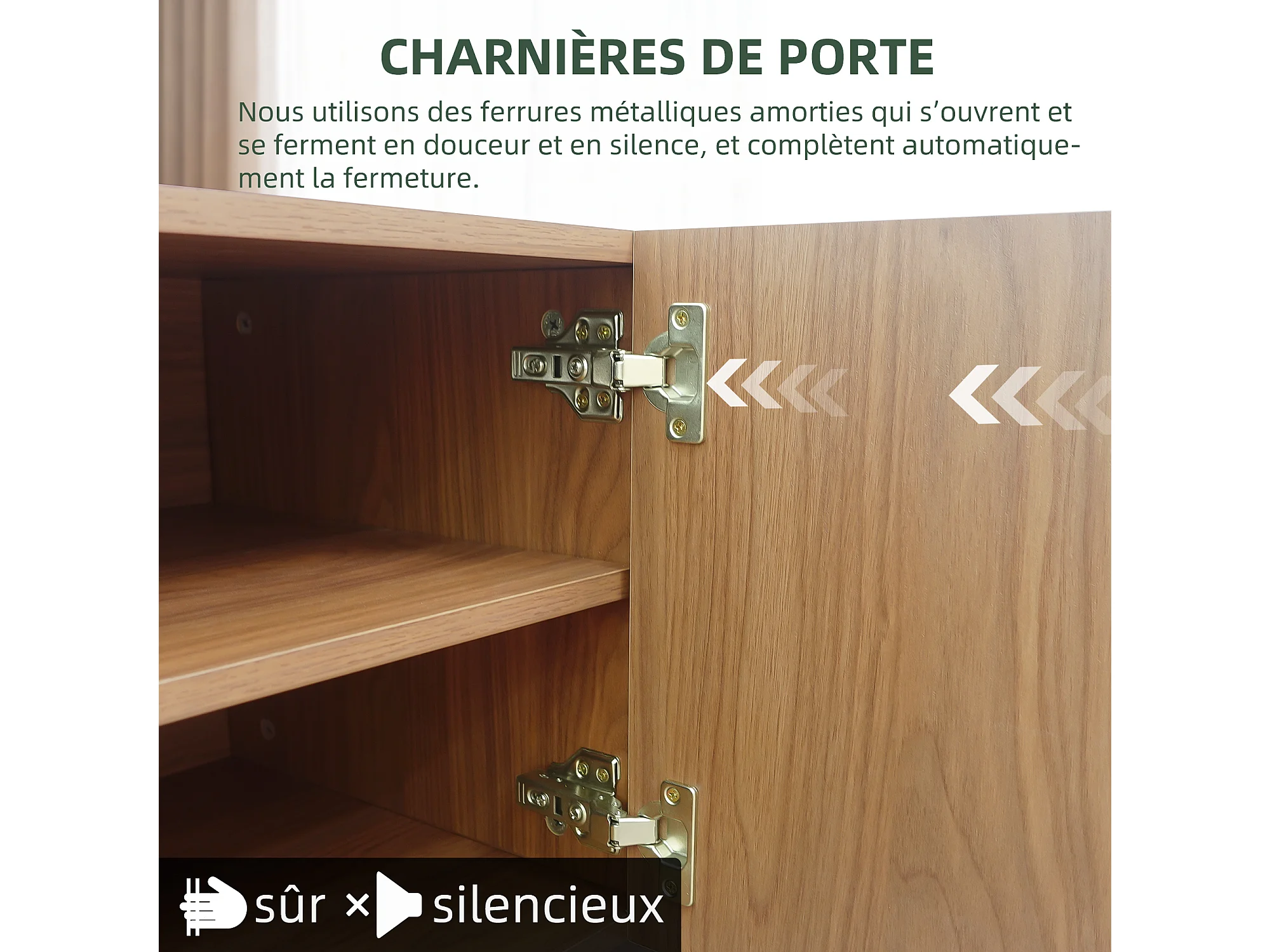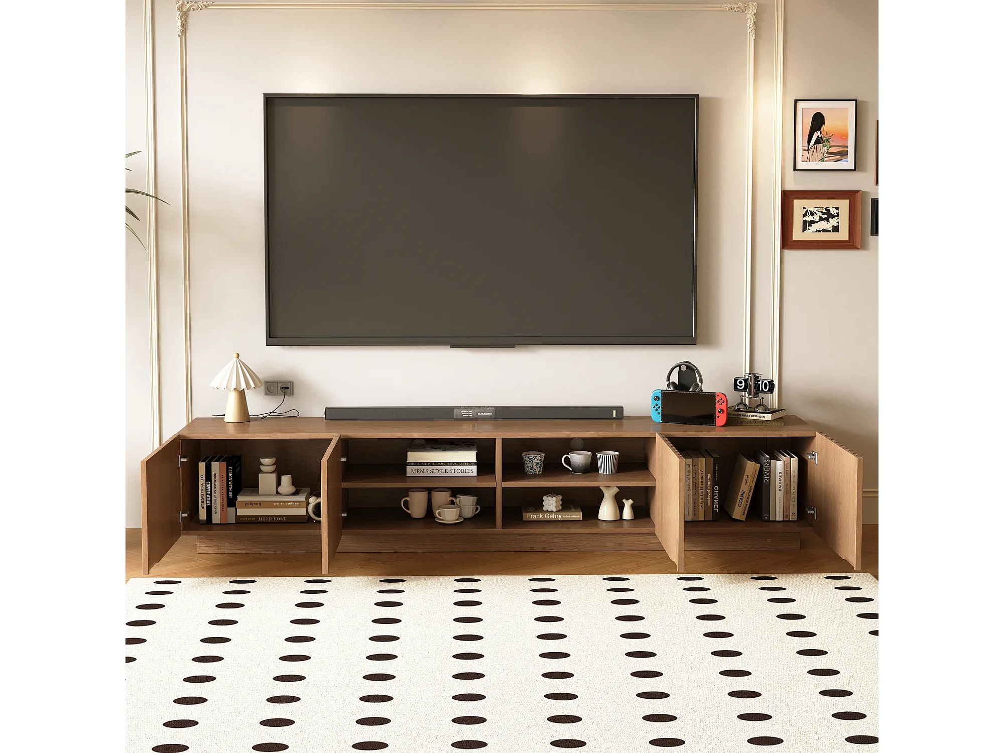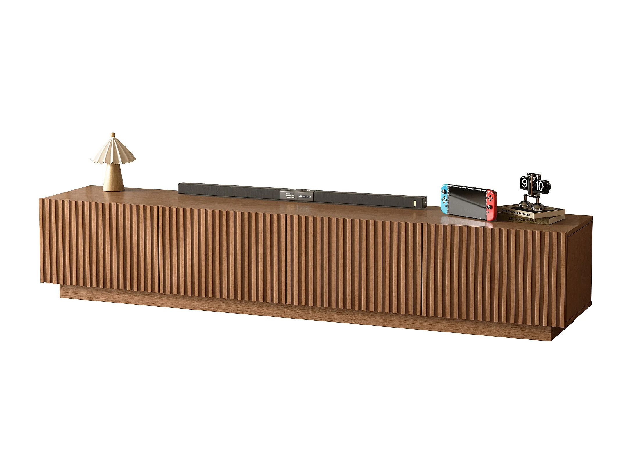 TV-Schrank aus Holz in Nussfarbe mit Lamellentüren, herausnehmbarer Ablage und großem Stauraum, 220-cm-Lowboard, geeignet für Fernseher ab 75 Zoll